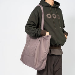 An oversized tote reinterpreted through 999HUMANITY’s distinctive sensibility. Made from textured, washed fabric that drapes softly while resisting shrinkage and distortion. Features spacious proportions, exterior and inner pockets for convenience, and comes in new seasonal colours.