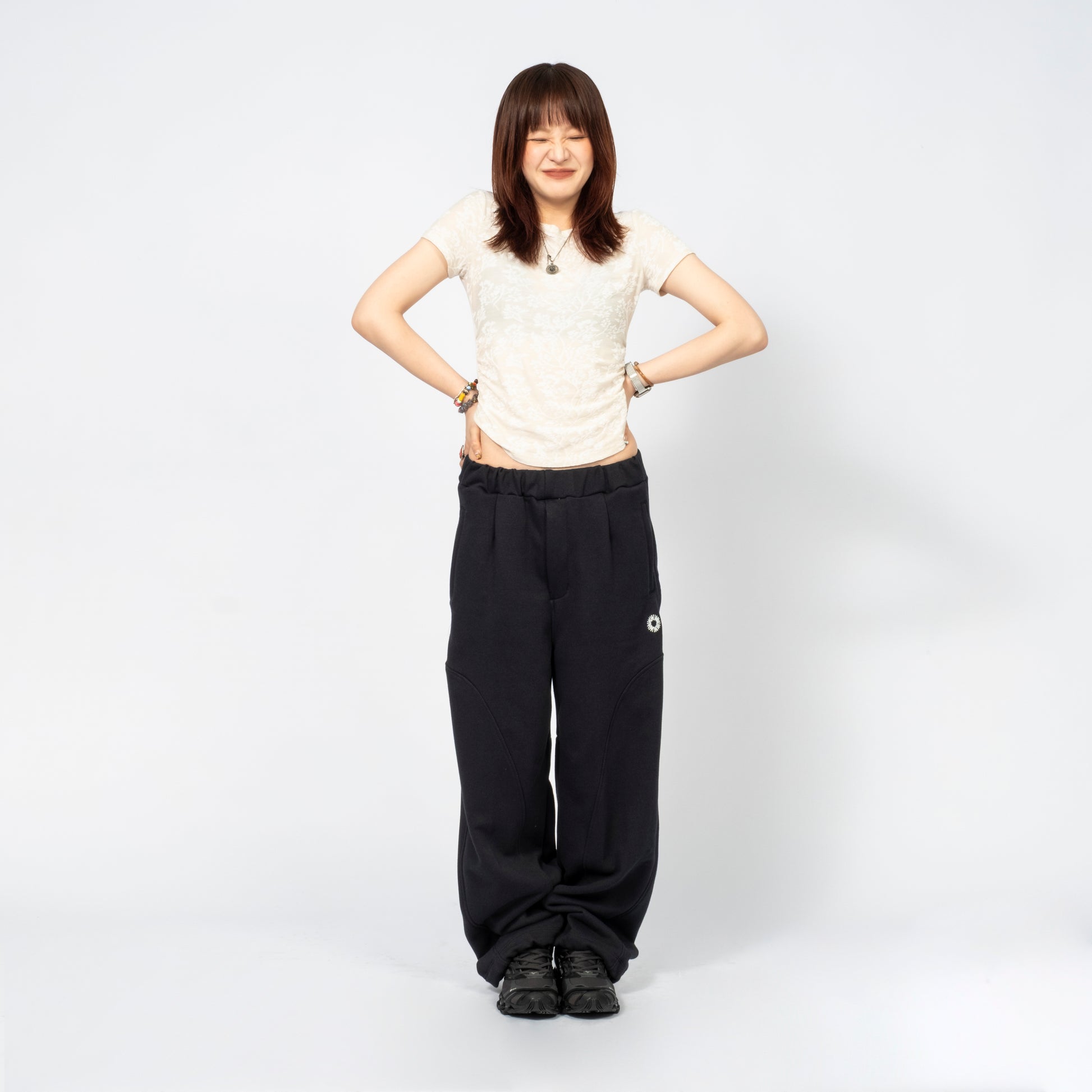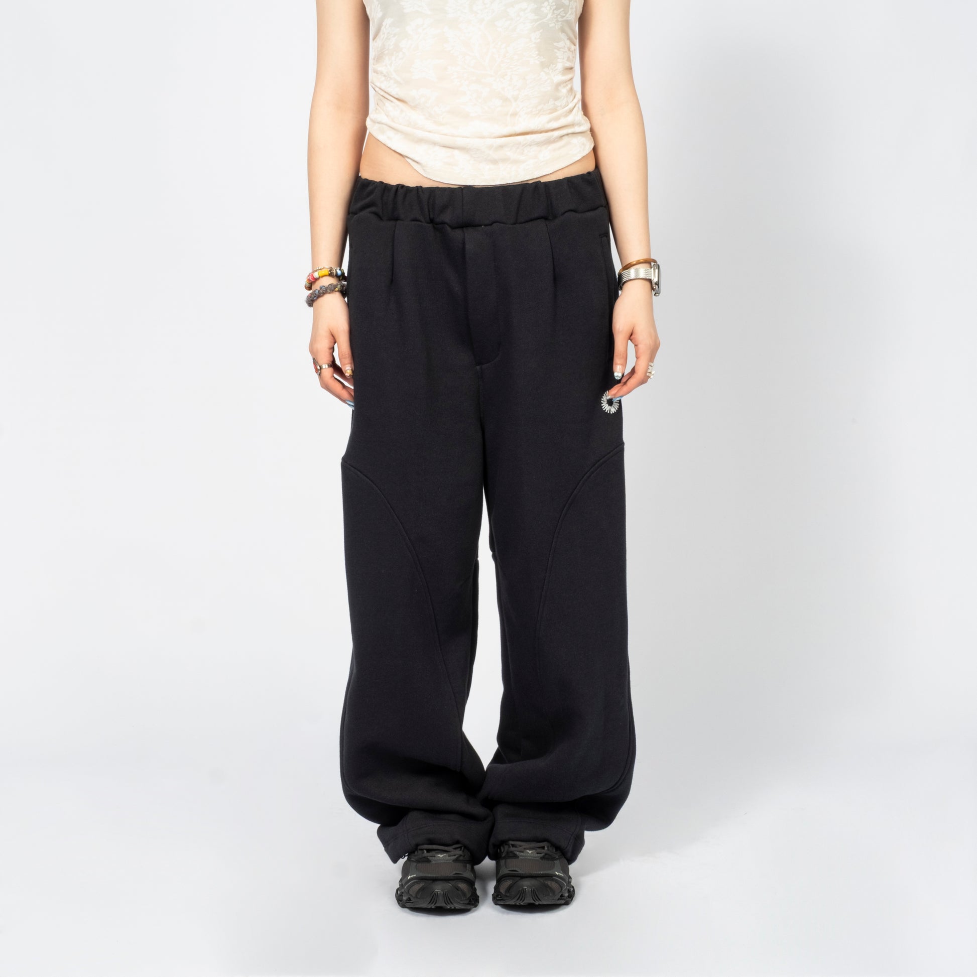 The beloved EVD Sweatpants return in a renewed version with softer fabric and an improved relaxed fit. Featuring a curved line that flows from side to hem, they offer a distinct silhouette reinterpreted through 999HUMANITY’s refined detailing.