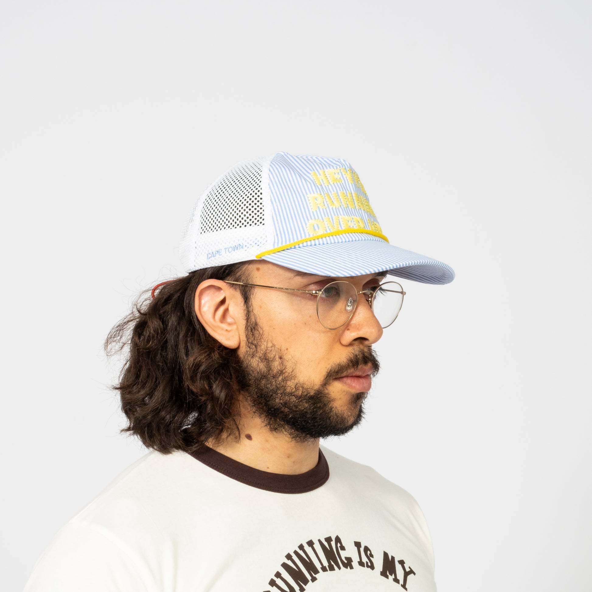 [ALEX ZONO] "HEY, IM RUNNING OVER HERE" TRUCKER _ BLUE STRIPE