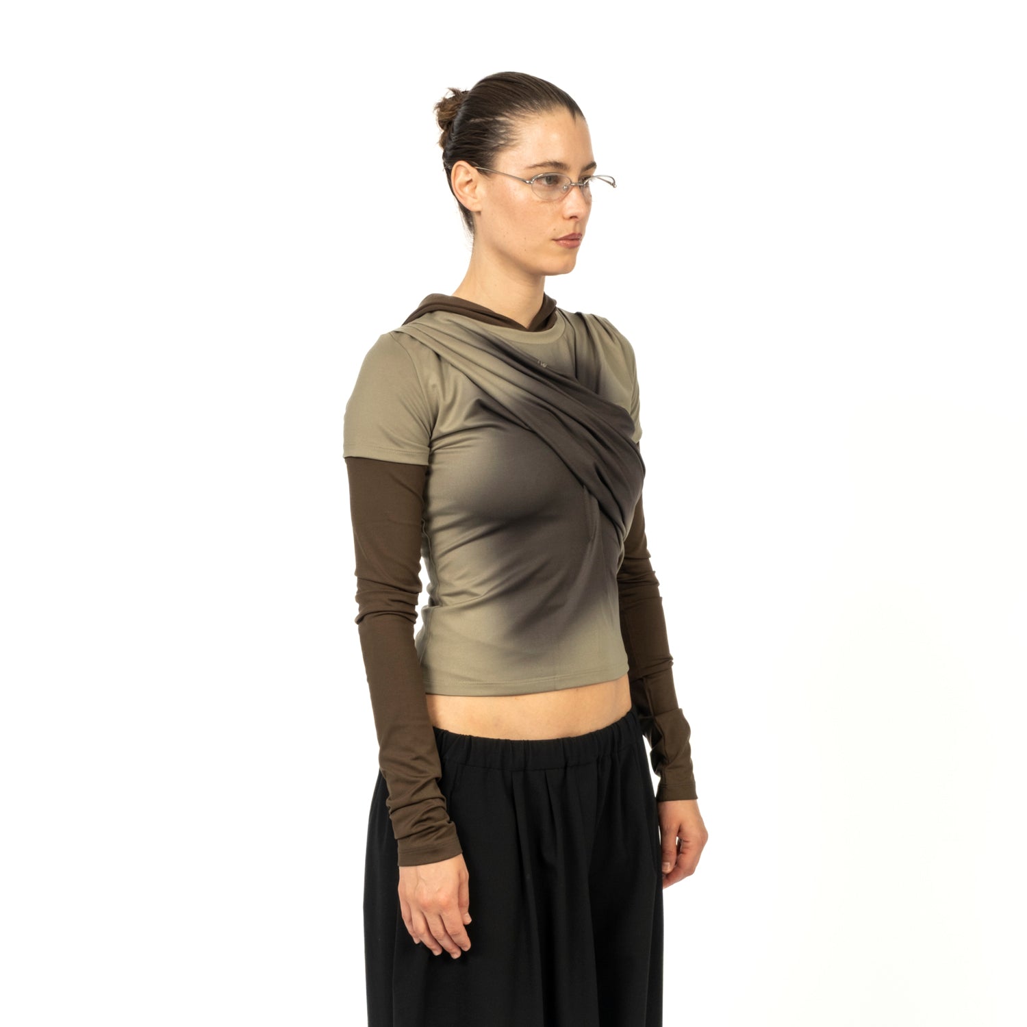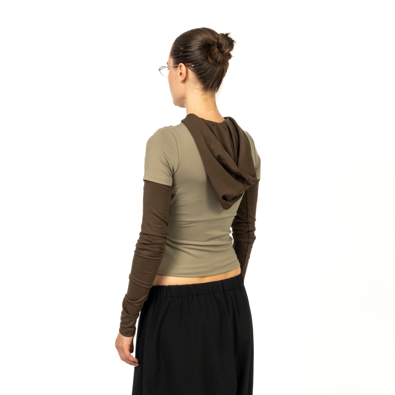 A layered sleeveless top knitted from an extra-fine wool blend, designed to create a refined three-layer effect without added bulk. Hand-embroidered detailing and subtle metal branding add a quiet finish.