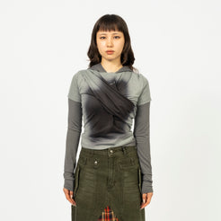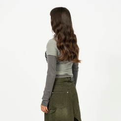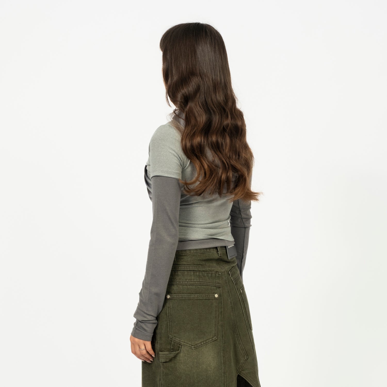 A layered sleeveless top knitted from an extra-fine wool blend, designed to create a refined three-layer effect without added bulk. Hand-embroidered detailing and subtle metal branding add a quiet finish.