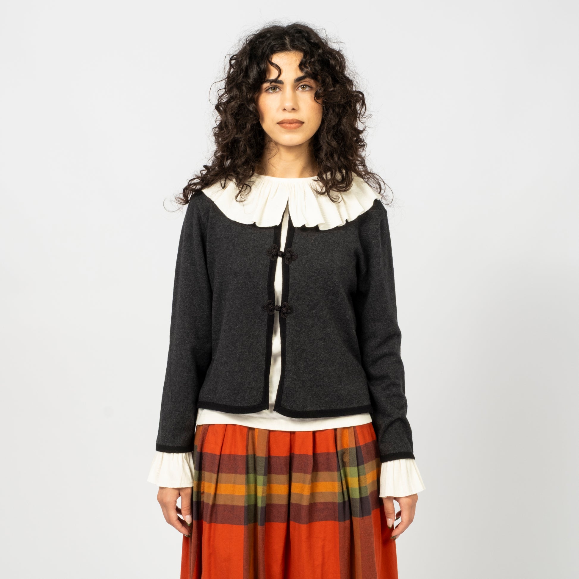 A returning BEAMS BOY favourite — this season’s Chinese-button cardigan lands in refreshed materials and colours. The traditional frog-style closures bring subtle character to a clean, compact silhouette, making it an easy layering piece through cooler months.