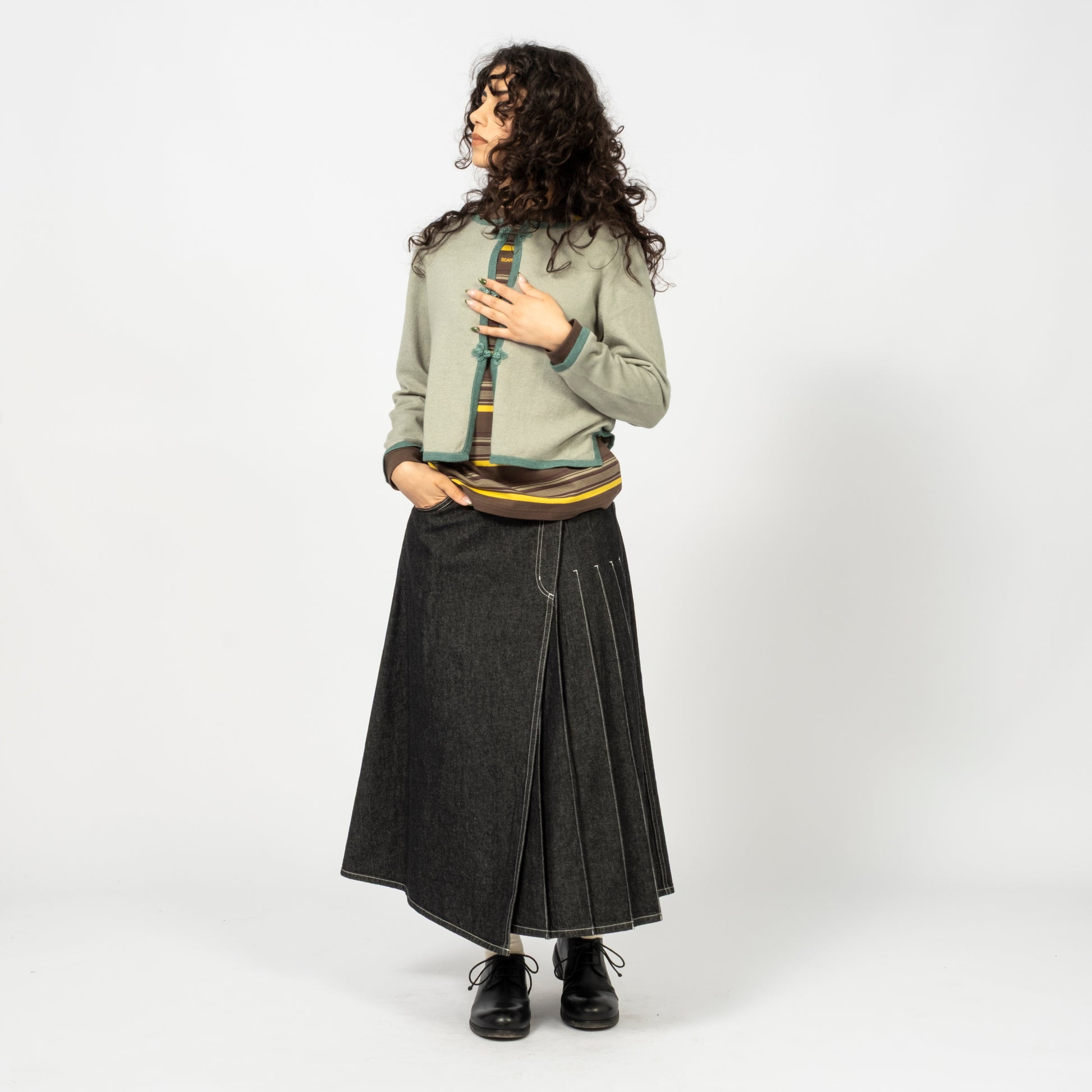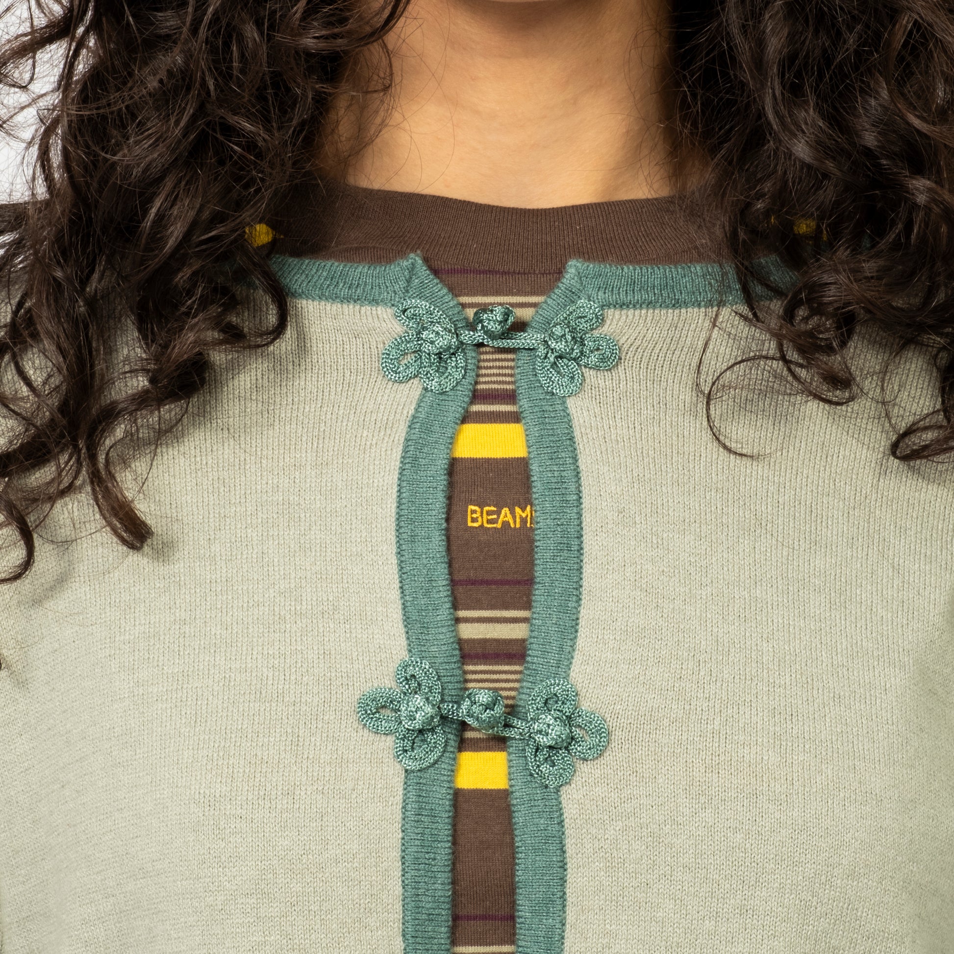 A returning BEAMS BOY favourite — this season’s Chinese-button cardigan lands in refreshed materials and colours. The traditional frog-style closures bring subtle character to a clean, compact silhouette, making it an easy layering piece through cooler months.