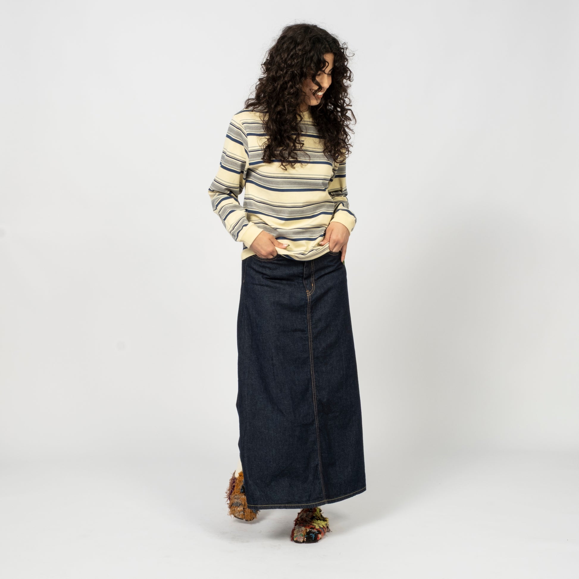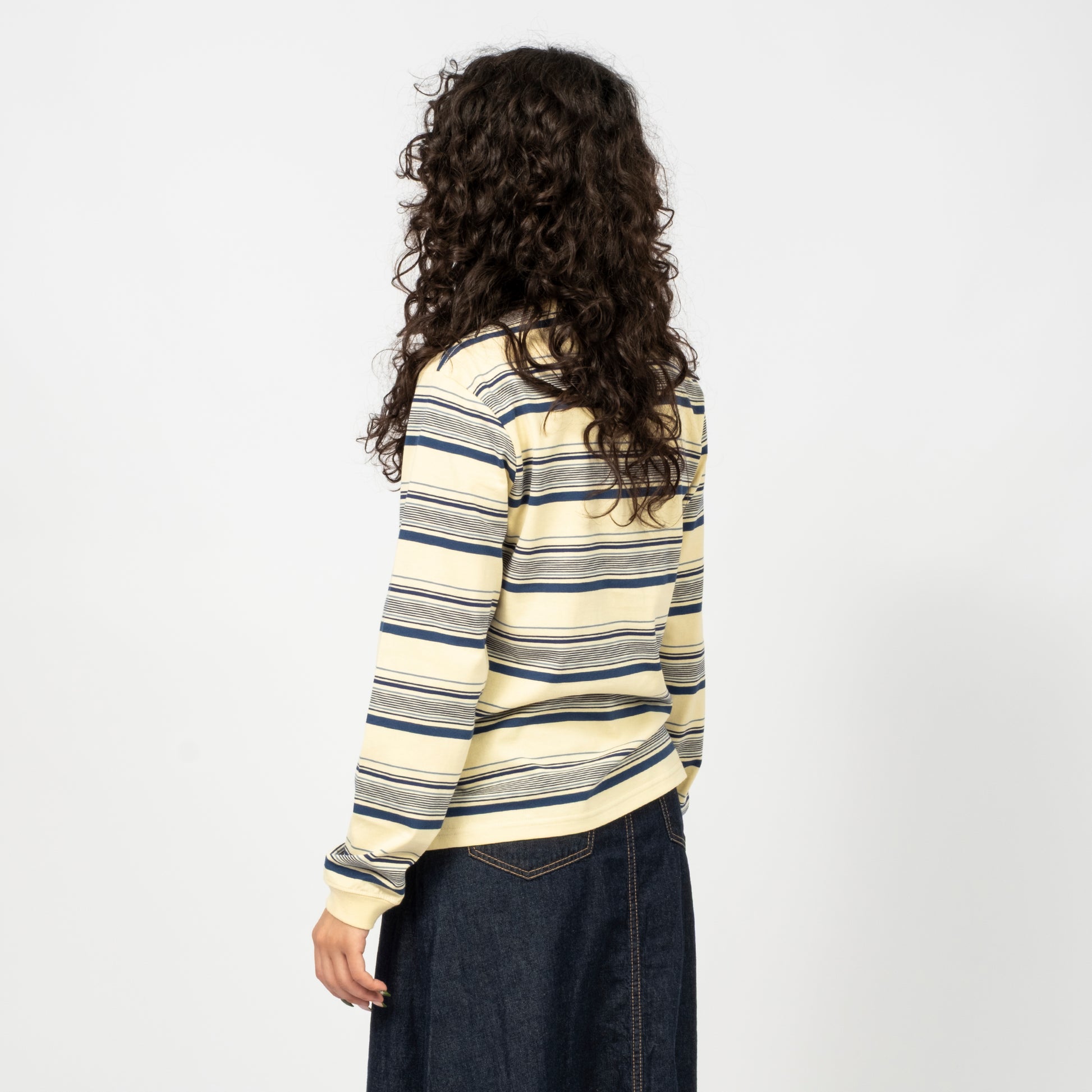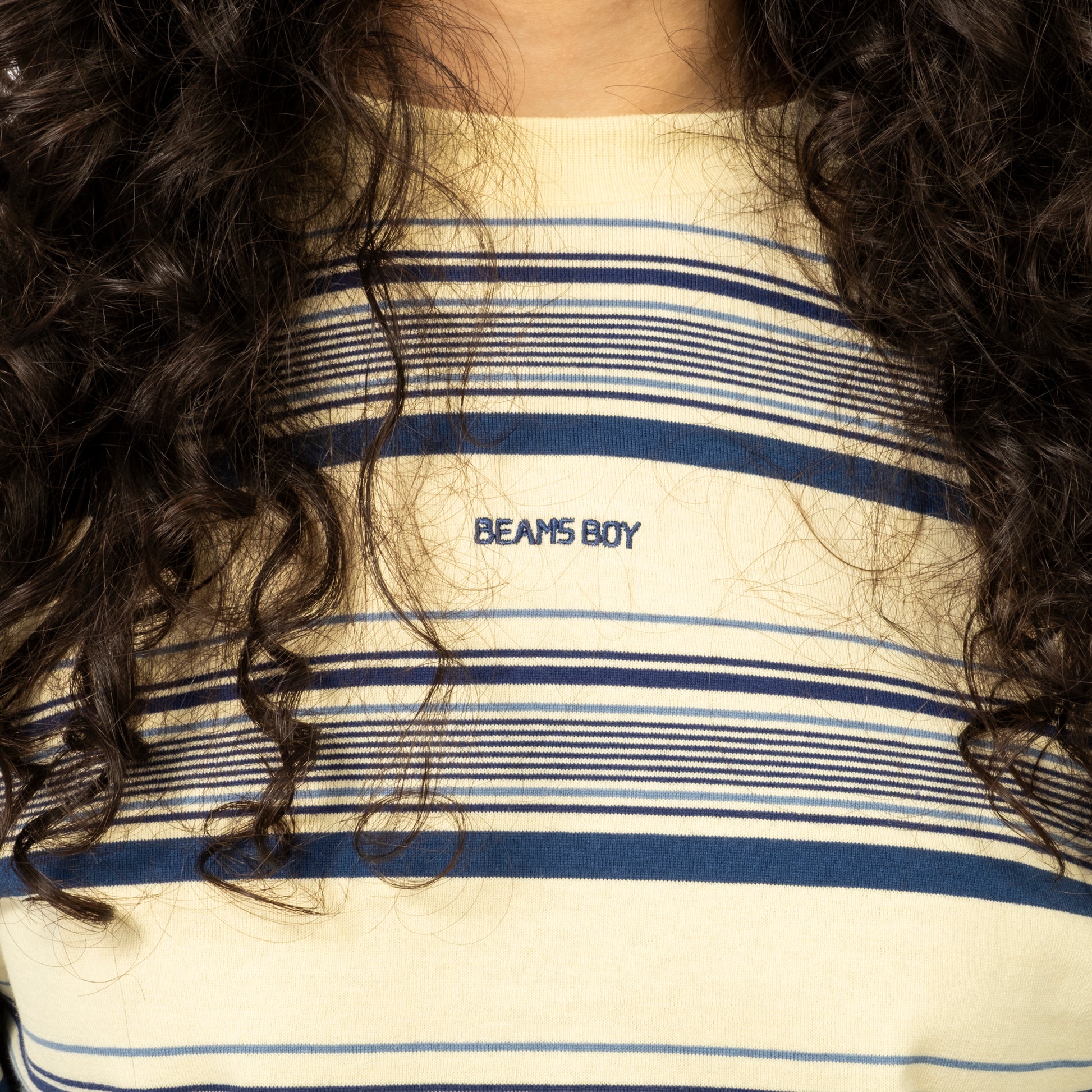 BEAMS BOY’s beloved striped long-sleeve returns for FW25. A clean base tone anchors the piece, with thoughtful stripe colour play and a subtle embroidered mini-logo for a balanced finish.
