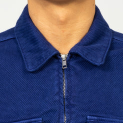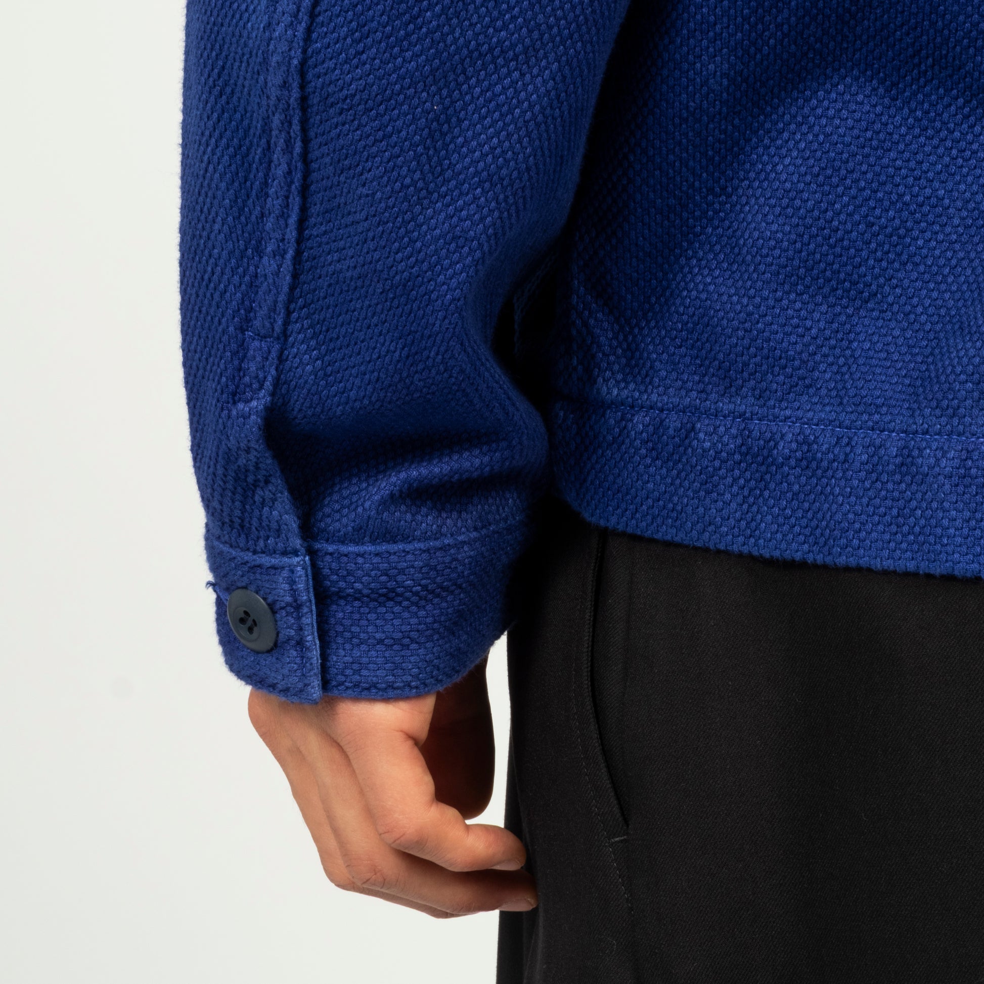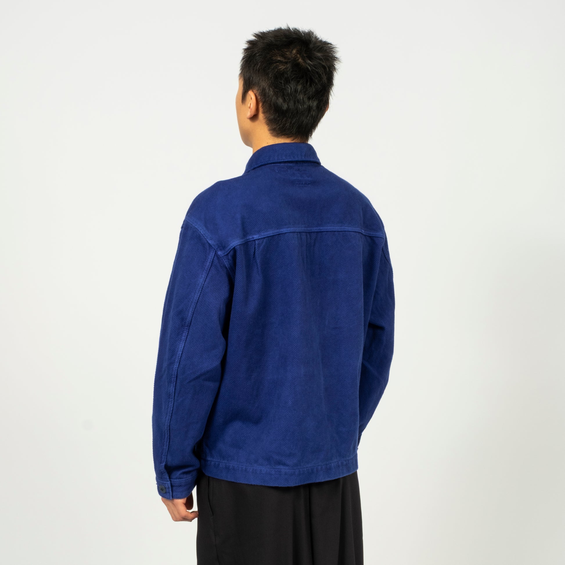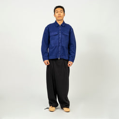 • Iconic sashiko fabric with durable yet soft structure • Individually hand-dyed in European work blue indigo • Compact, comfortable silhouette • European work-jacket inspired design • Clean form with statement chest pocket • Indigo patina deepens over time