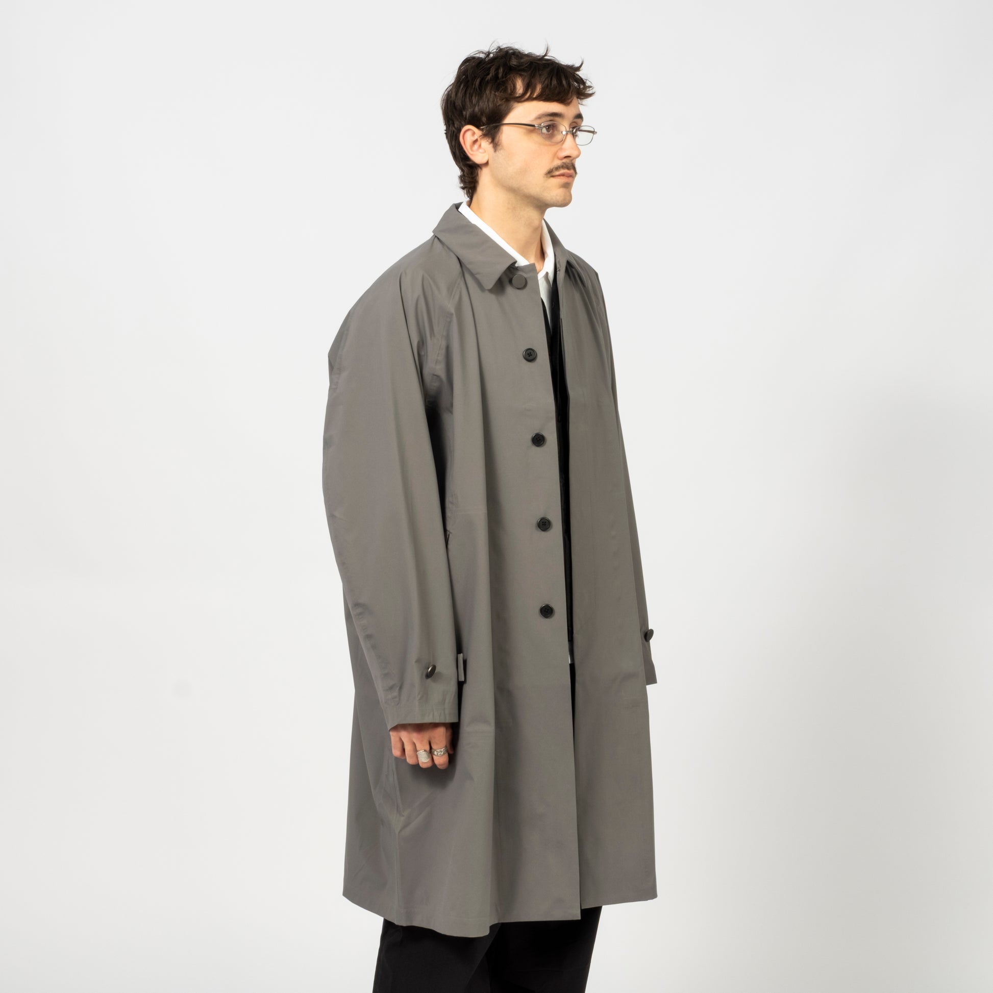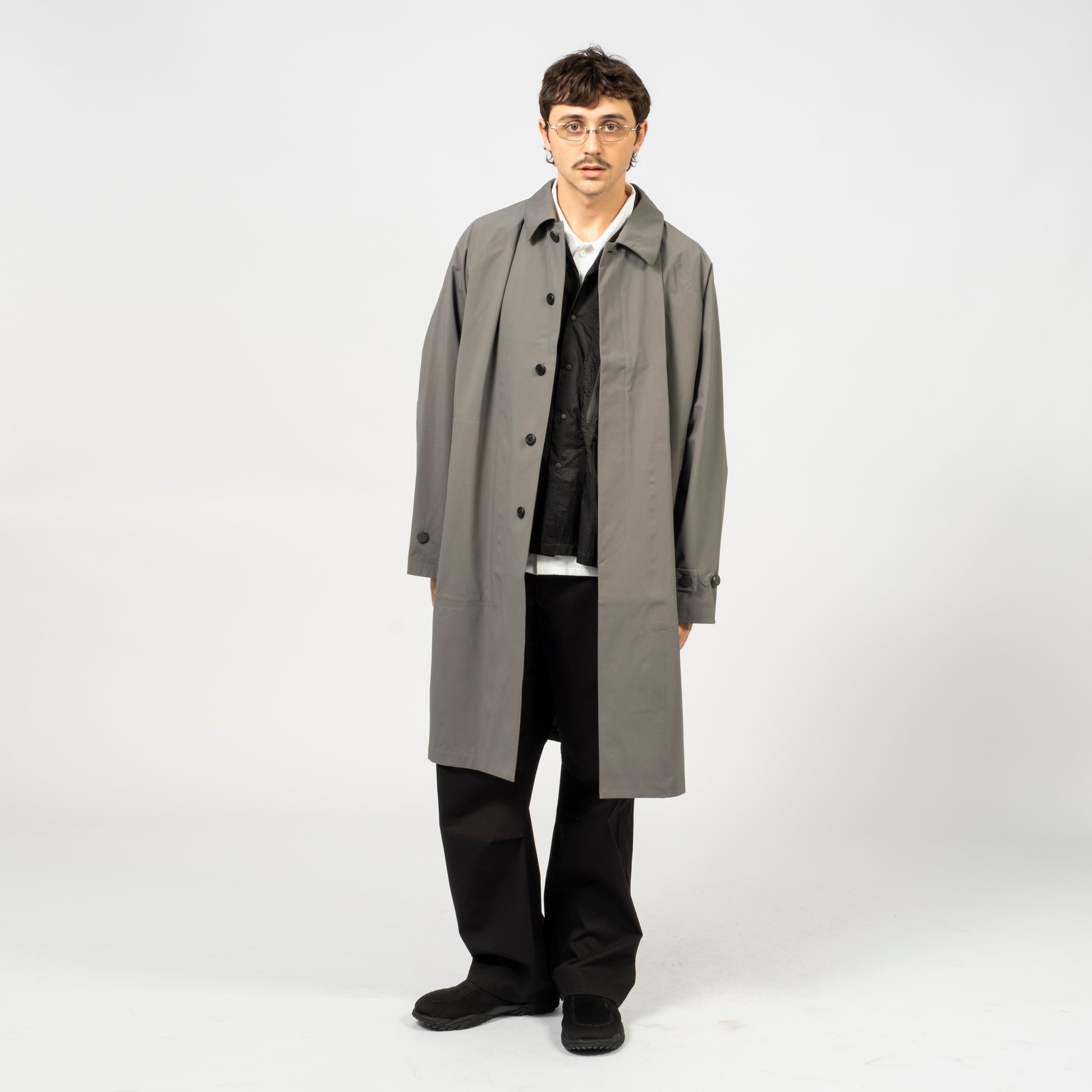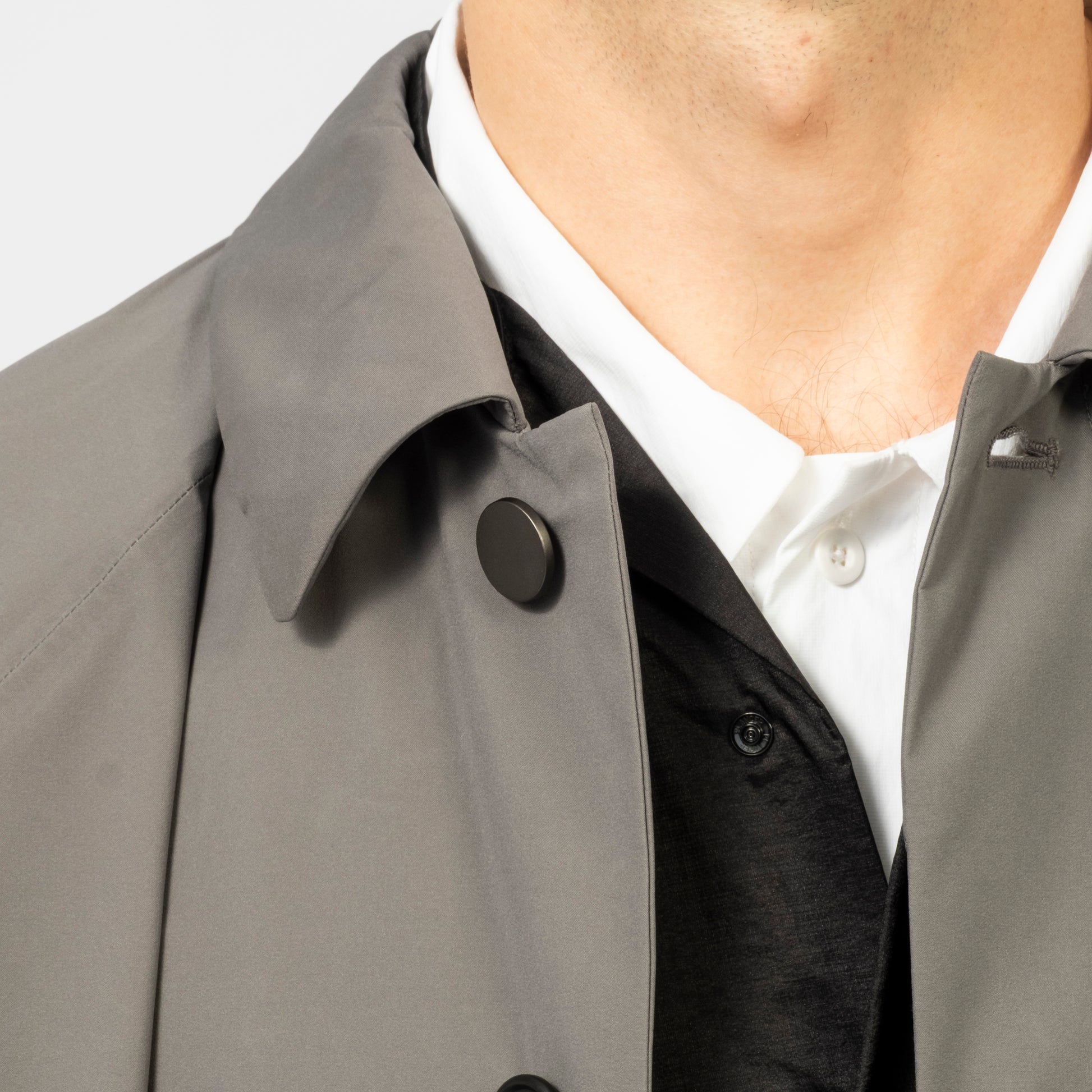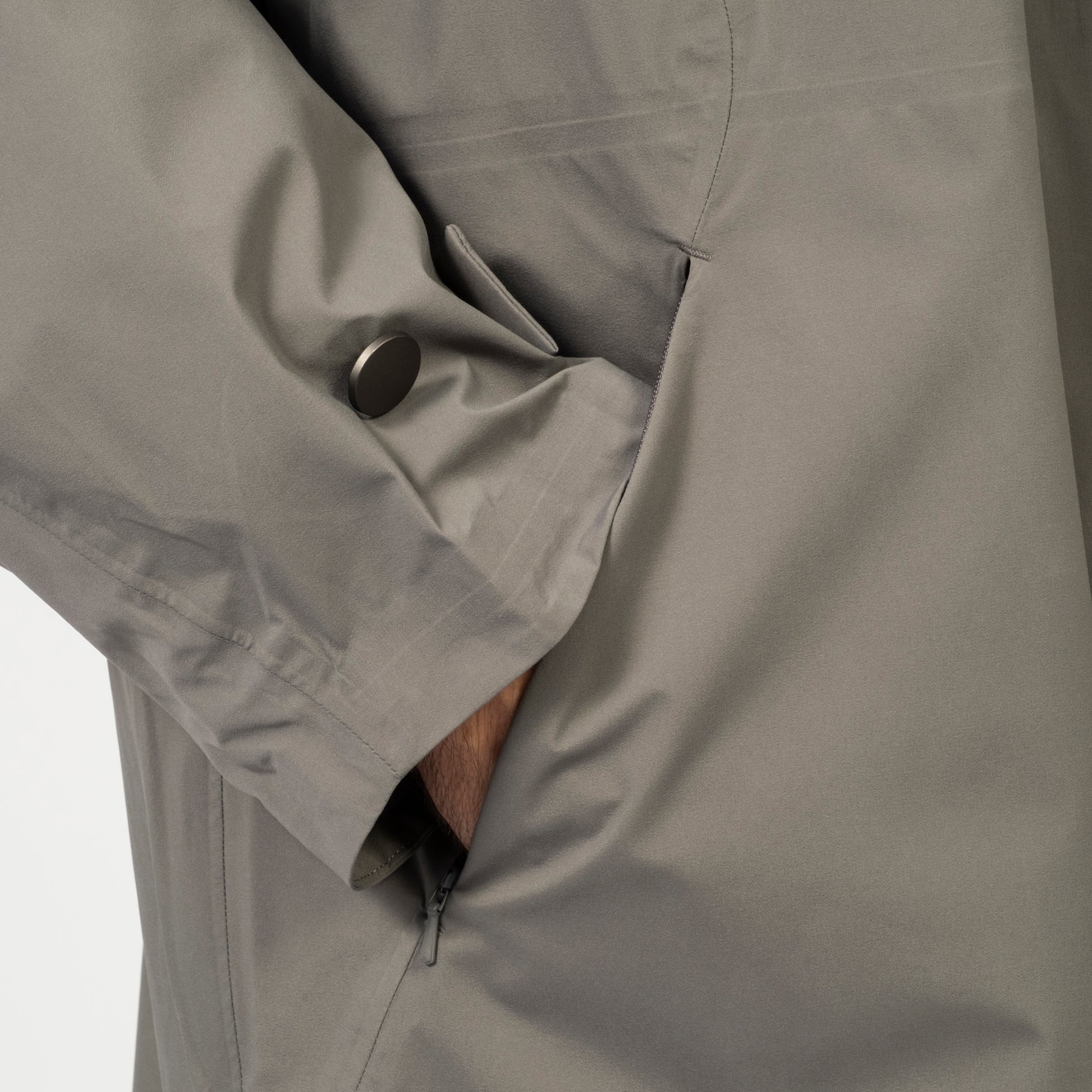 A refined stand-collar coat cut from the latest PERTEX SHIELD 3-layer fabric, offering a clean, minimalist profile with outdoor-grade performance. The denser, soft-touch material brings warmth suited to autumn and winter, while full seam taping, a fly-front closure, and concealed pocket zips keep the silhouette sharp. Drop shoulders and a balanced fit add a relaxed, modern ease, making it effortless for both city wear and active movement.