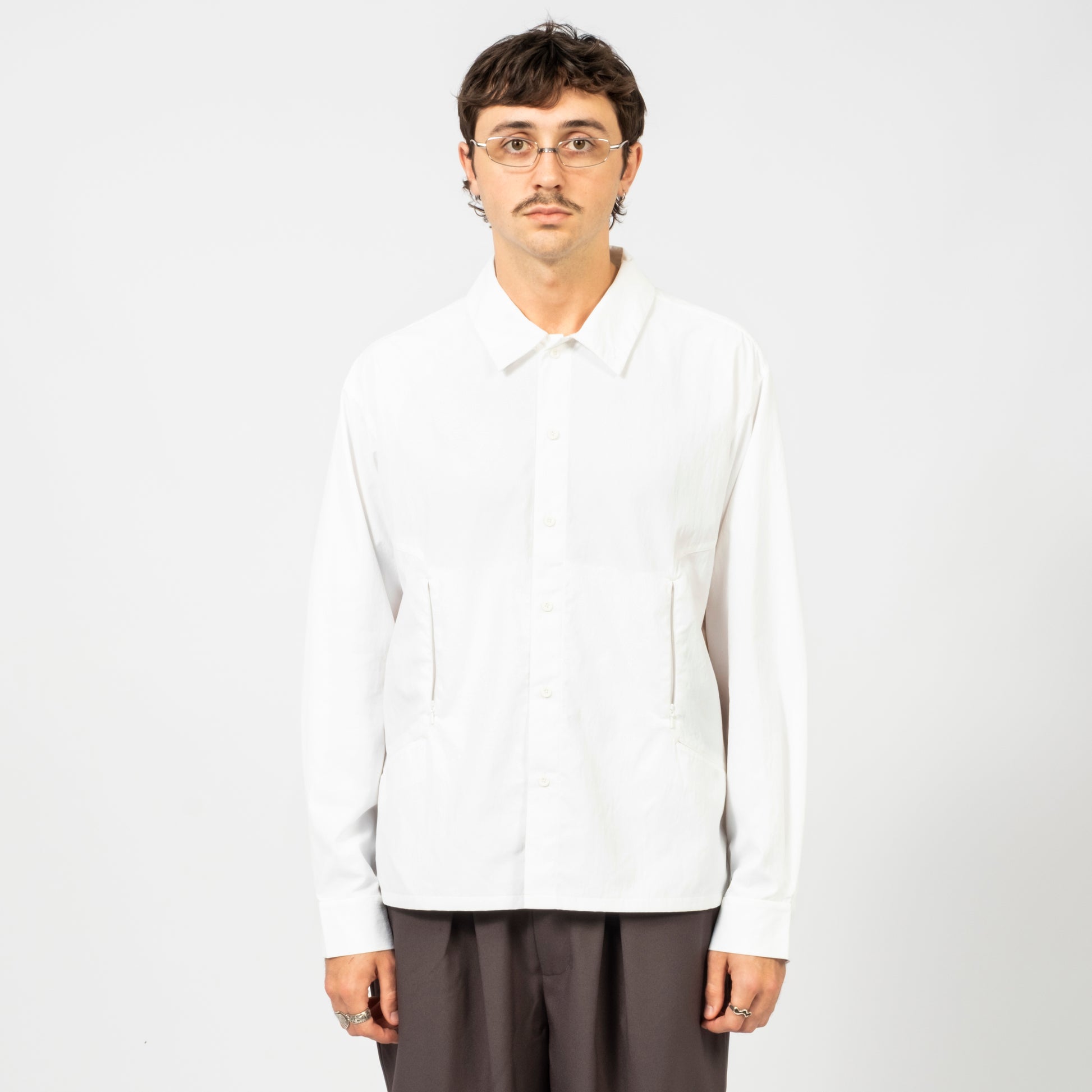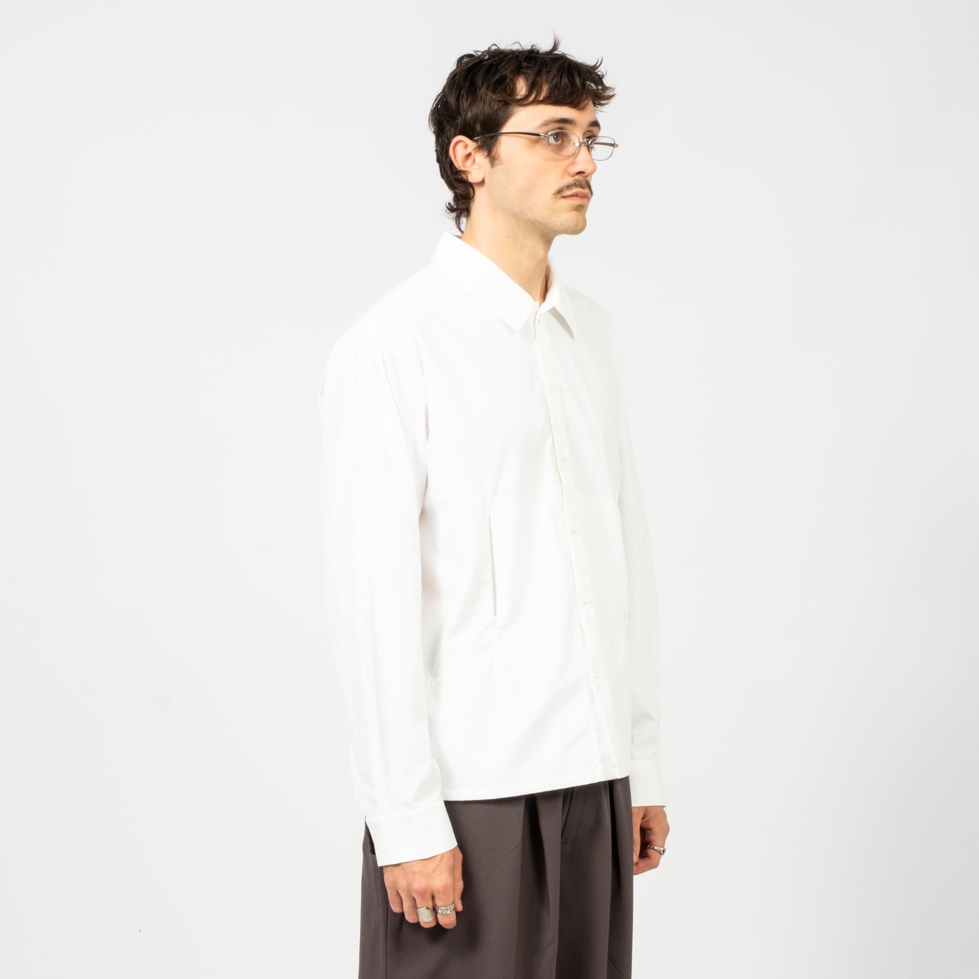 A technical shirt built for long-term wear, combining Cordura strength with a Dantotsu finish that stays effective even after heavy washing. A clean buttoned collar, concealed front zip, and hidden storage bring quiet functionality, while underarm grommets keep airflow steady through shifting weather.
