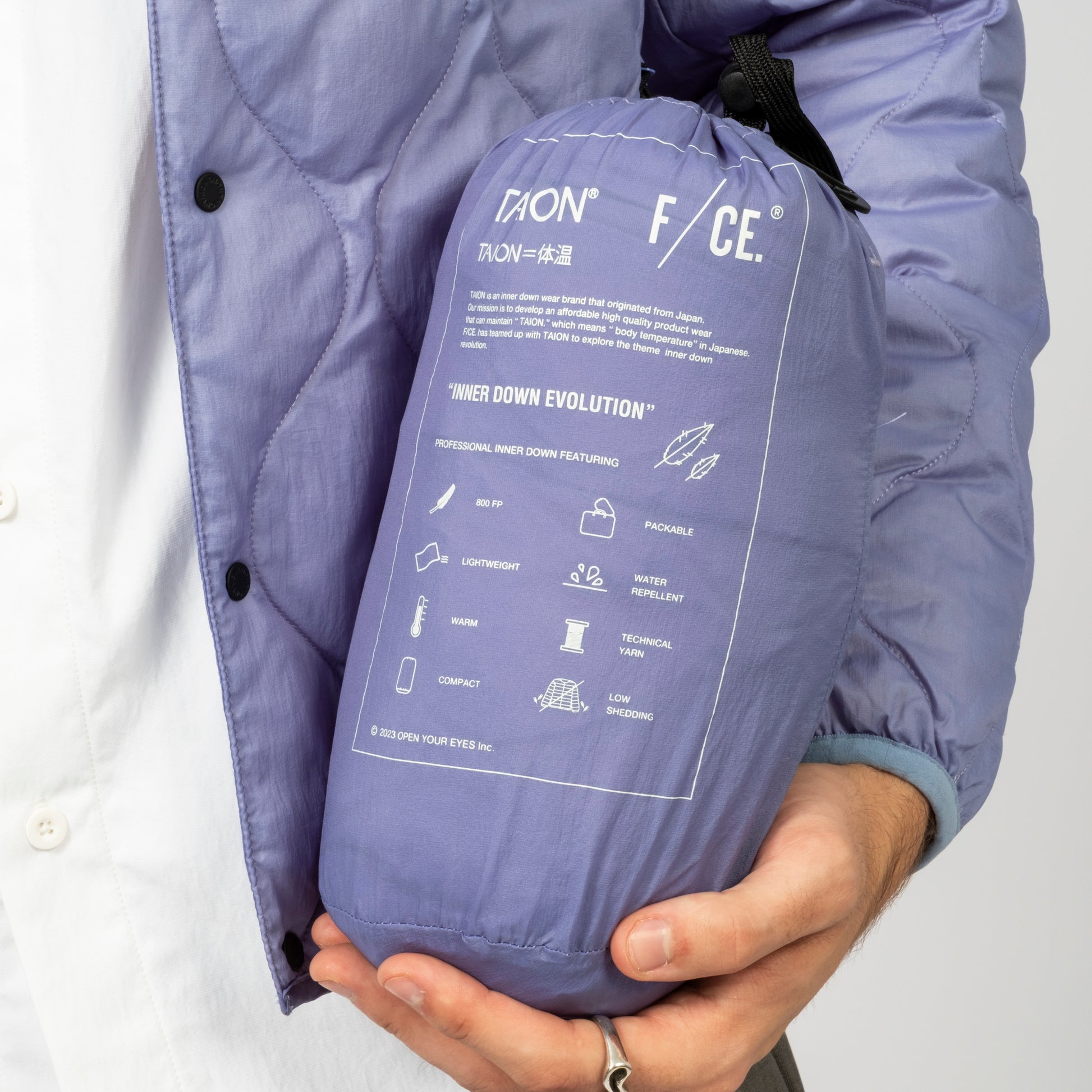 A down cardigan created in collaboration between TAION and F/CE., engineered with TAION’s down-specific stitching system to minimise blowout and maintain warmth. Made from a lightweight, durable ripstop, it’s designed to layer effortlessly while offering adaptable function and premium insulation.