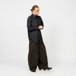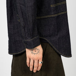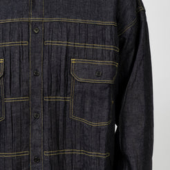 The FDMTL Printed Boro Short features a long sleeve design with an all-over print and button closure. It includes two chest pockets and a slightly curved hem for added style.