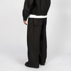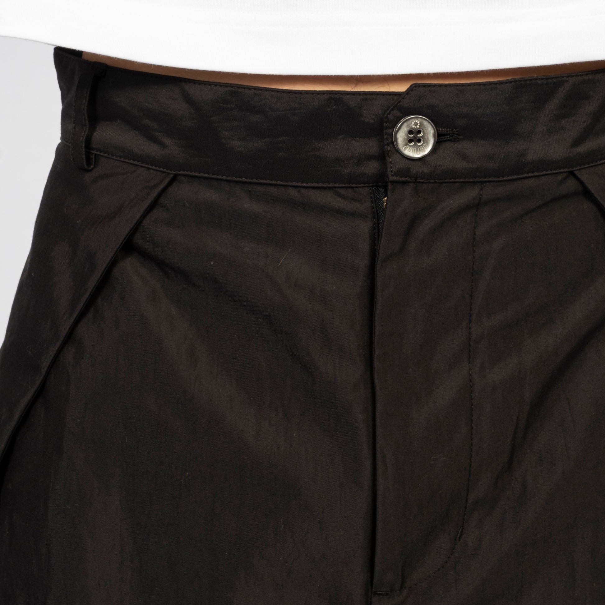 Cotton–nylon left-twill with subtle sheen and wrinkle finish