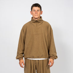 A reworked evolution of last winter’s Stevenson Fleece, now introduced as the Stevenson Smock — inspired by the iconic Manchester spot that sparked the city’s alfresco culture. Crafted from low-twist yarn for a soft, textured hand feel and relaxed drape.