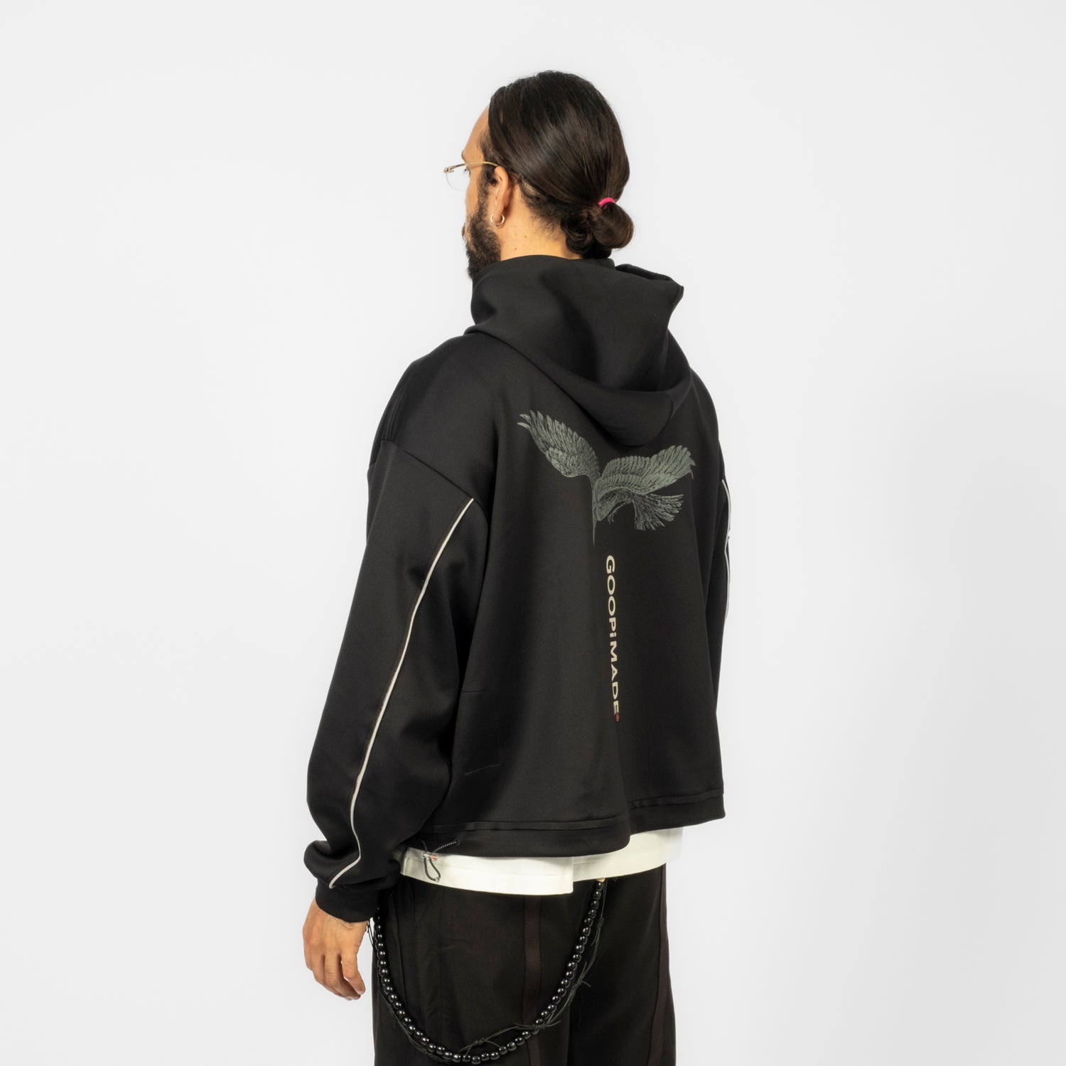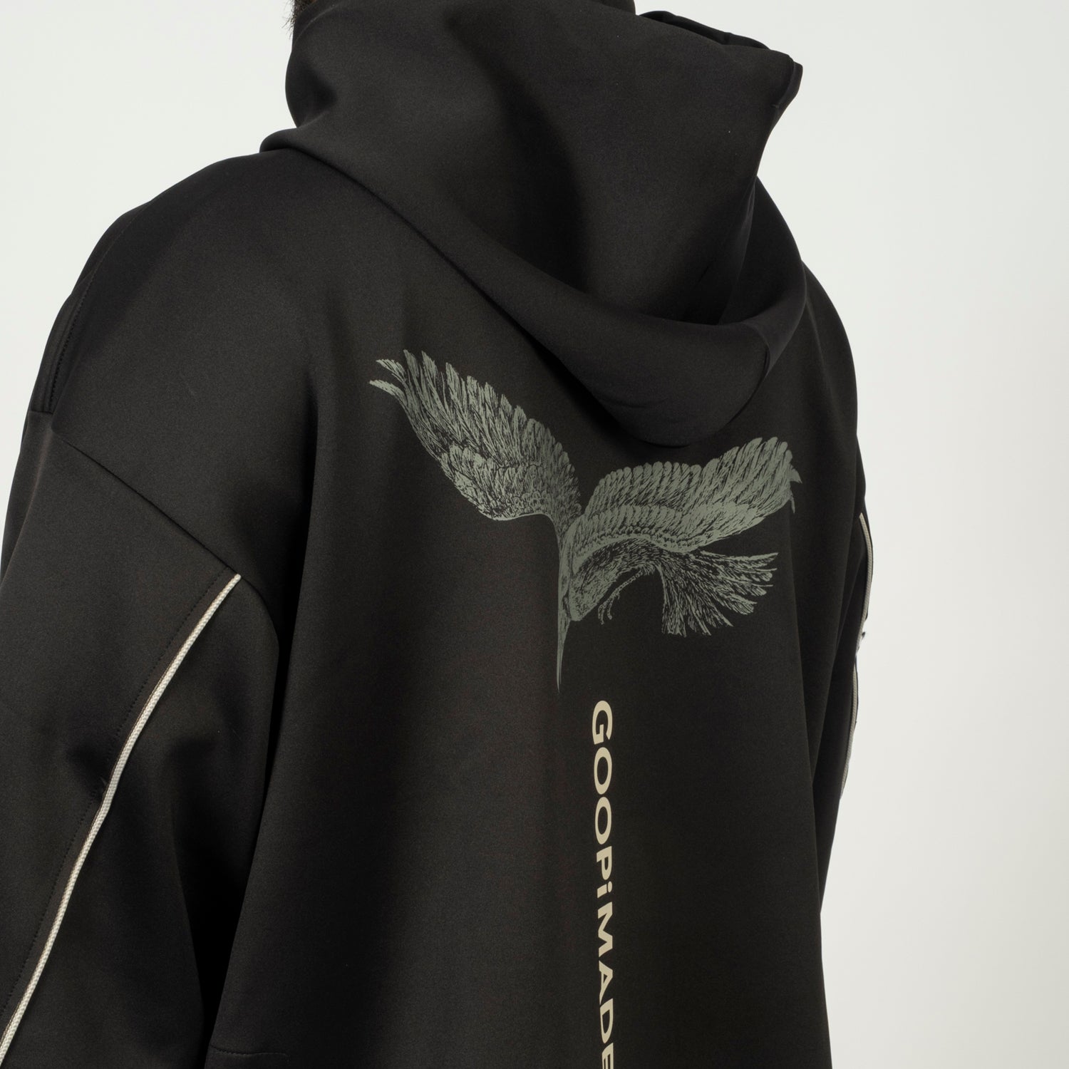 A collaborative hoodie where graphic expression meets technical construction. WILDSIDE YOHJI YAMAMOTO’s visual language is merged with GOOPiMADE’s functional approach, forming a layered, sculptural silhouette that feels modern, comfortable, and built for everyday movement.