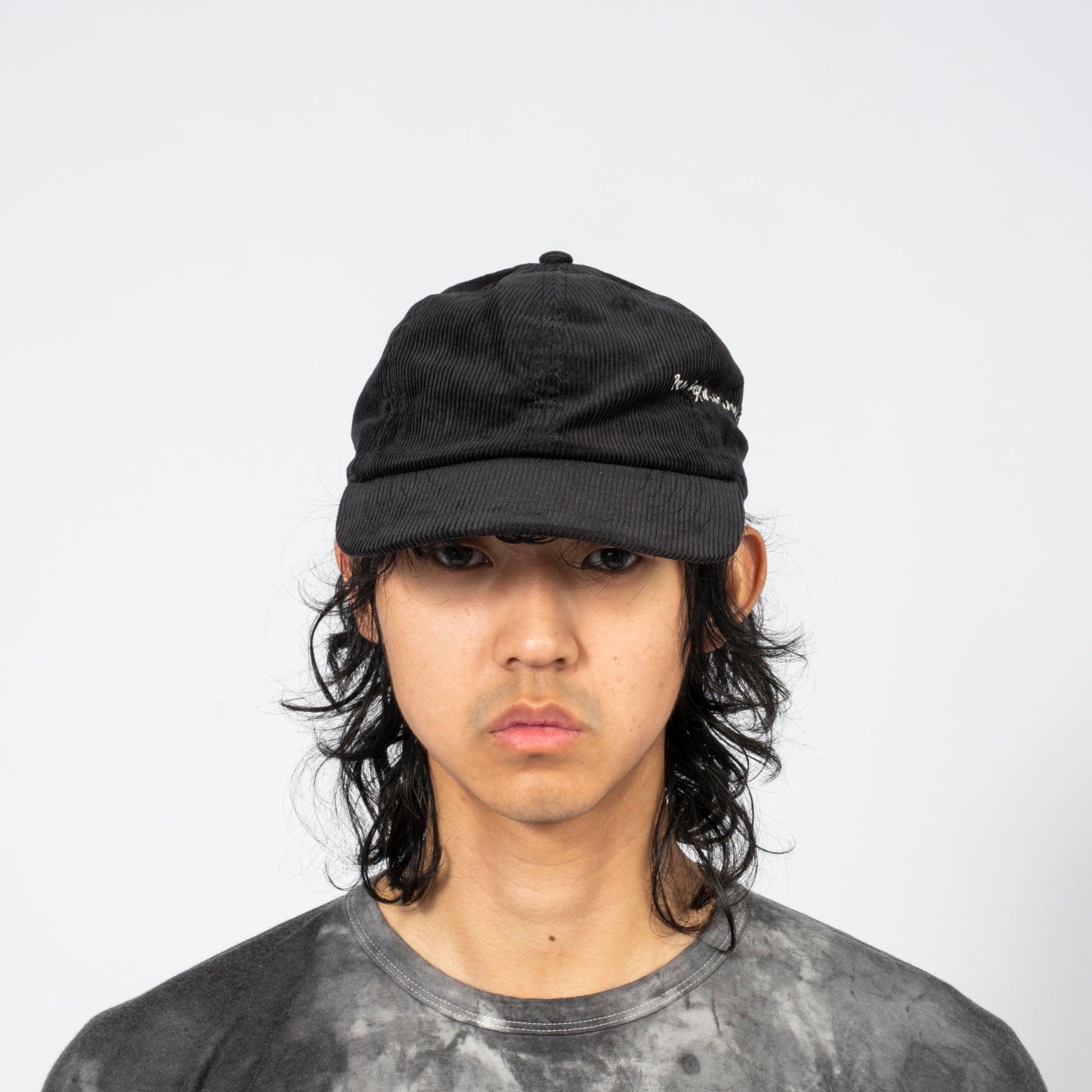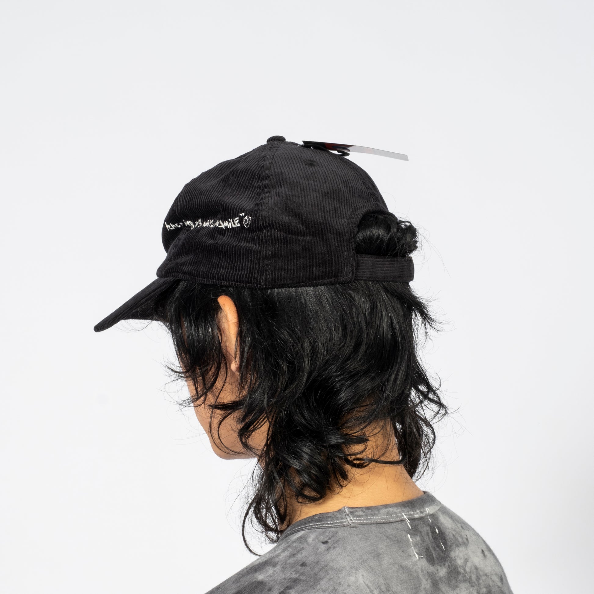 INNAT A soft corduroy baseball cap embroidered with a simple message for peace: “PEACE BEGINS WITH A SMILE” alongside...