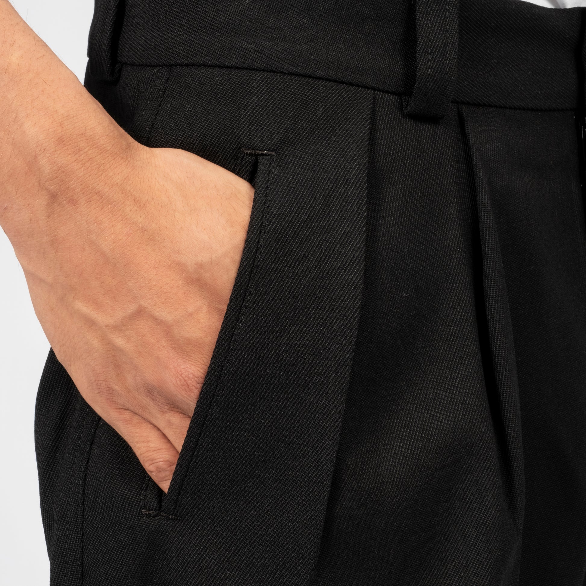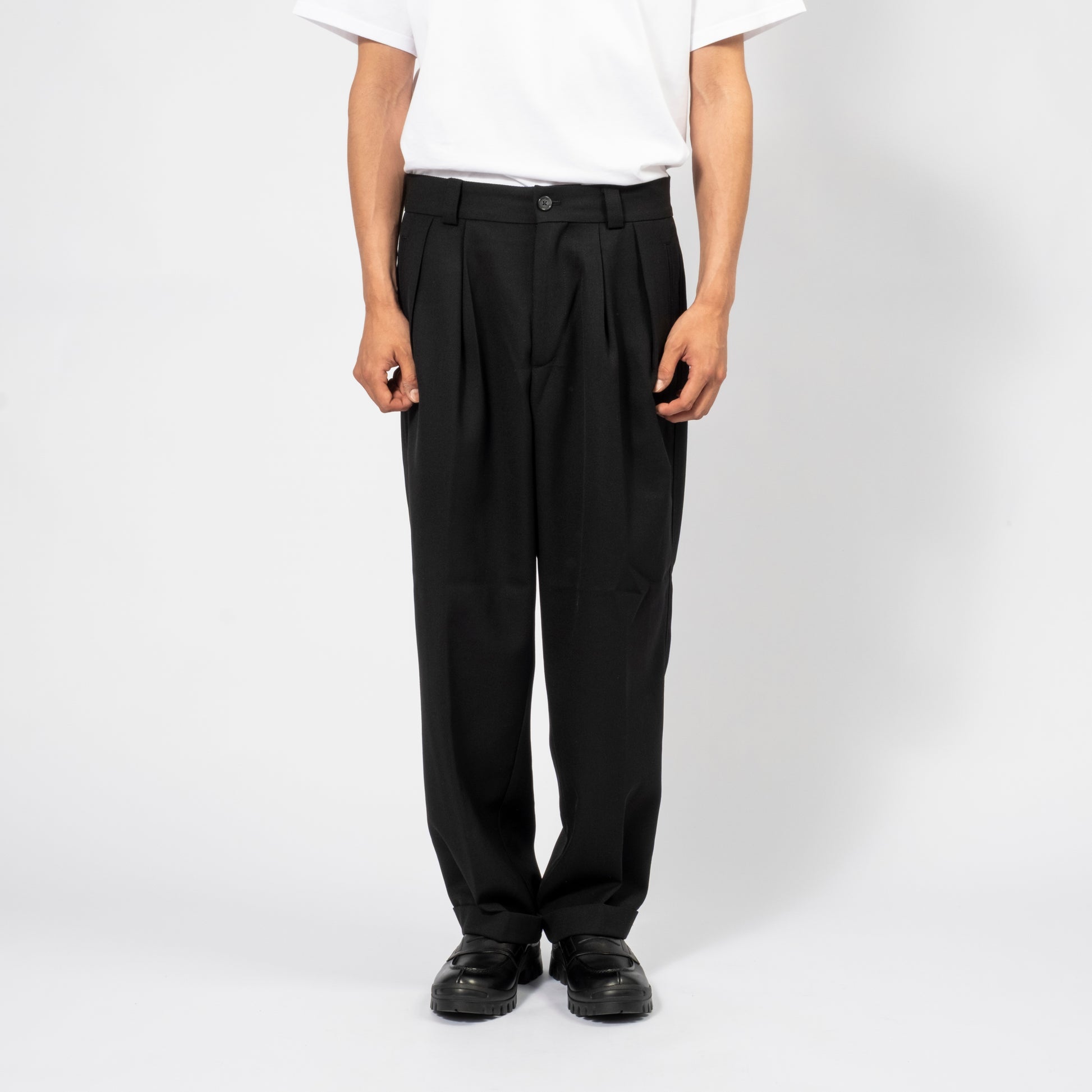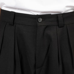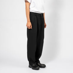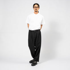 Two-tuck pants crafted from 1980s tailored jacket fabric, reworked for a modern silhouette. Featuring asymmetric tuck details, a balanced waistband, and a gentle taper for a refined finish.