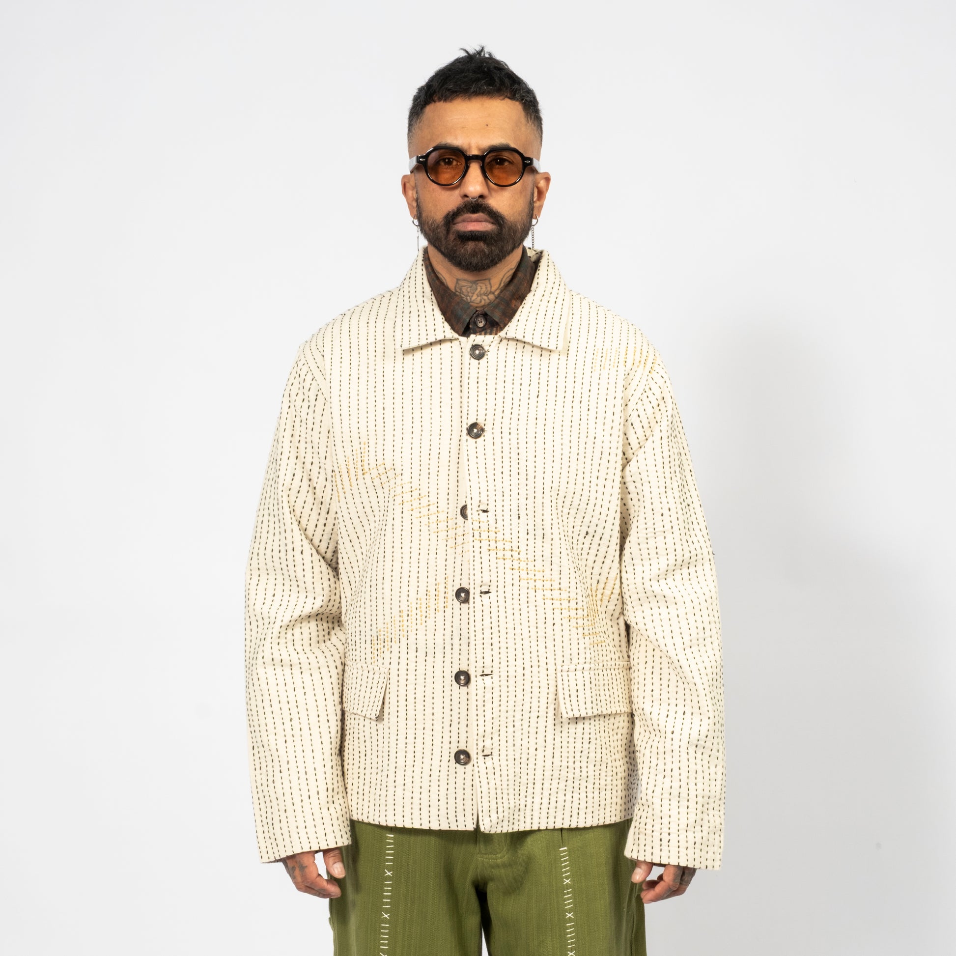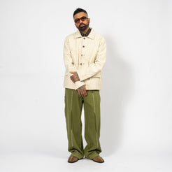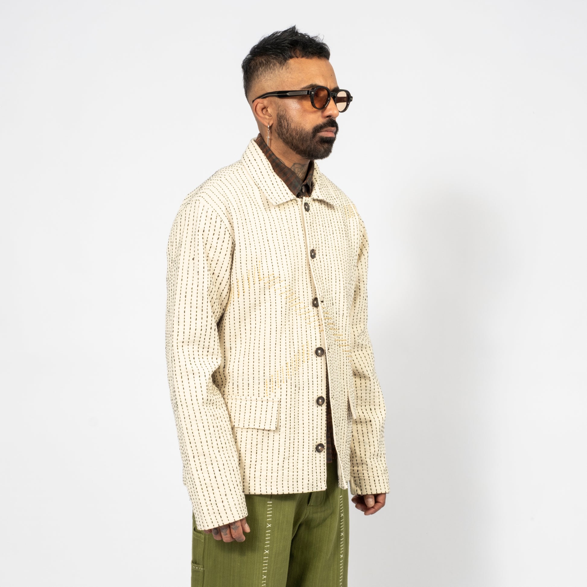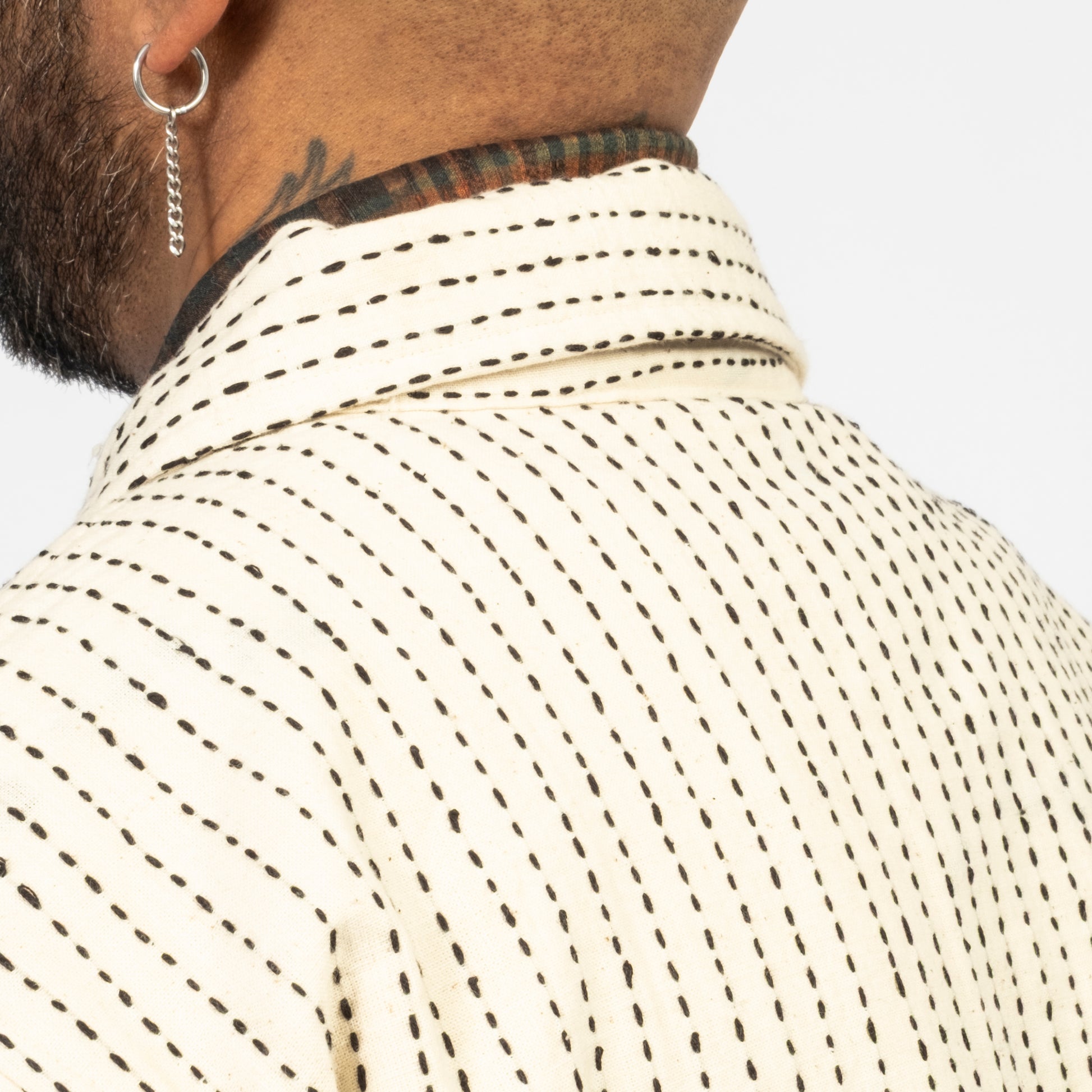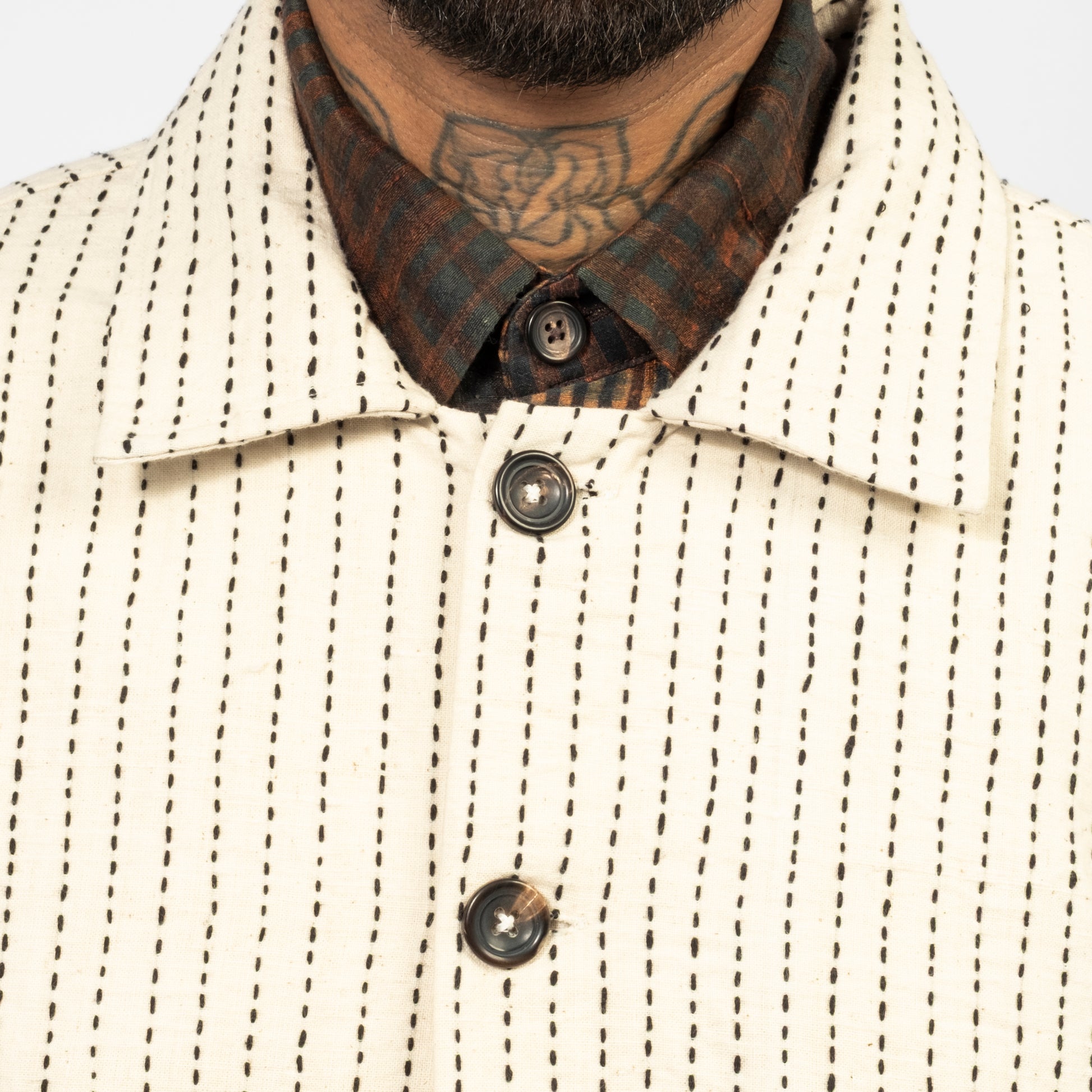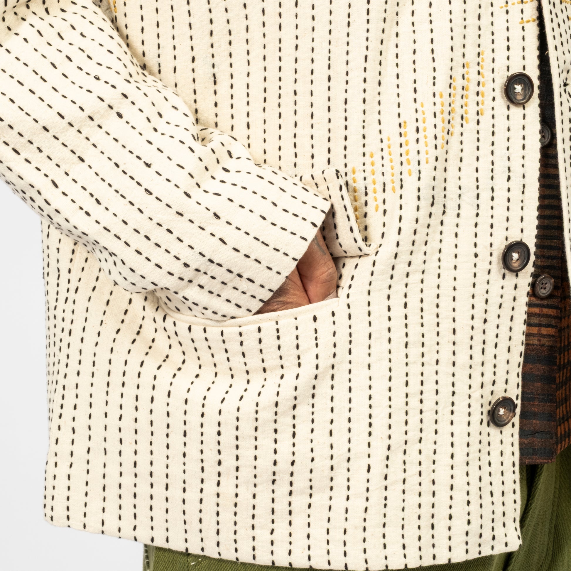 [KARTIK RESEARCH] FW25-17 KANTHA CROPPED JACKET _ ECRU/BLACK