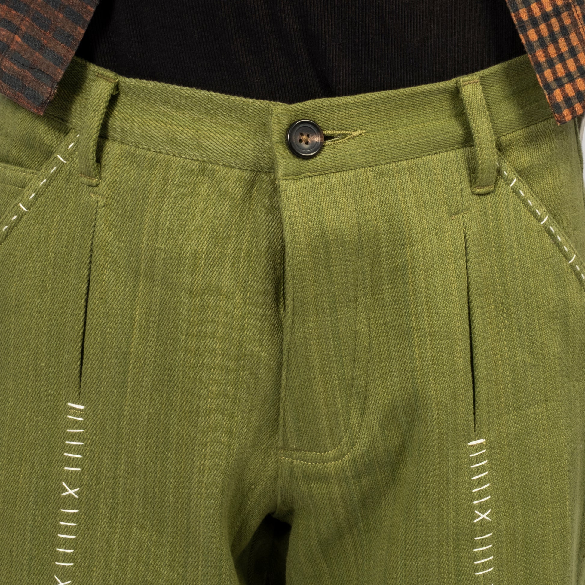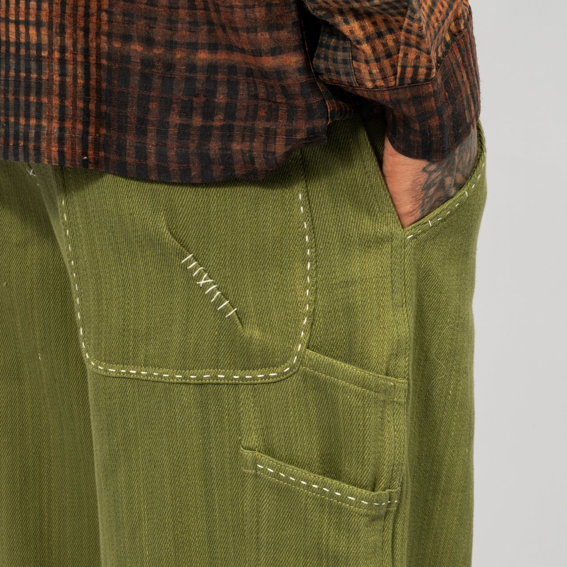[KARTIK RESEARCH] FW25-96 SHAANTI PANTS _ GREEN/ECRU