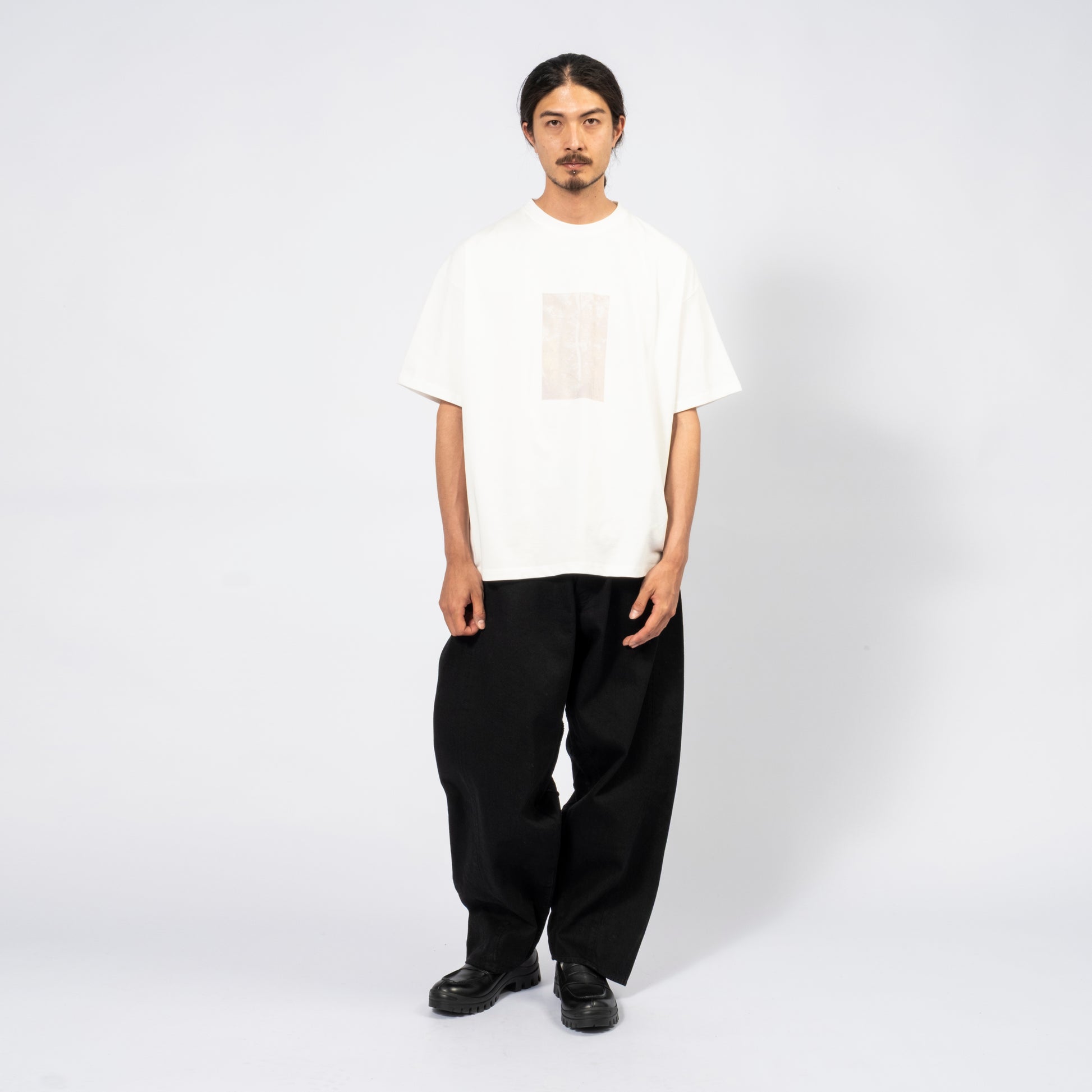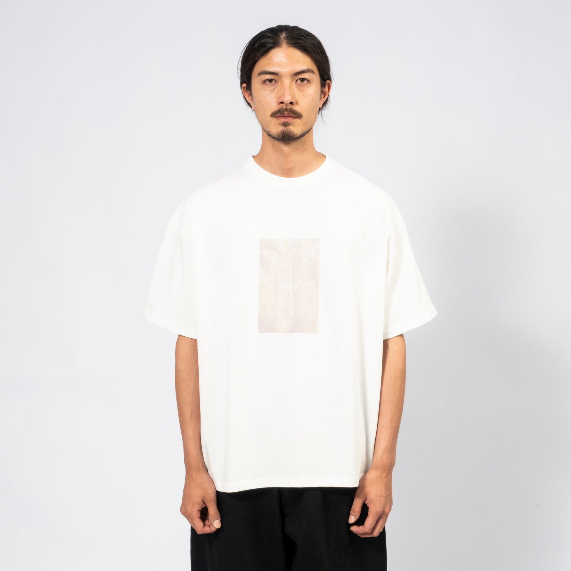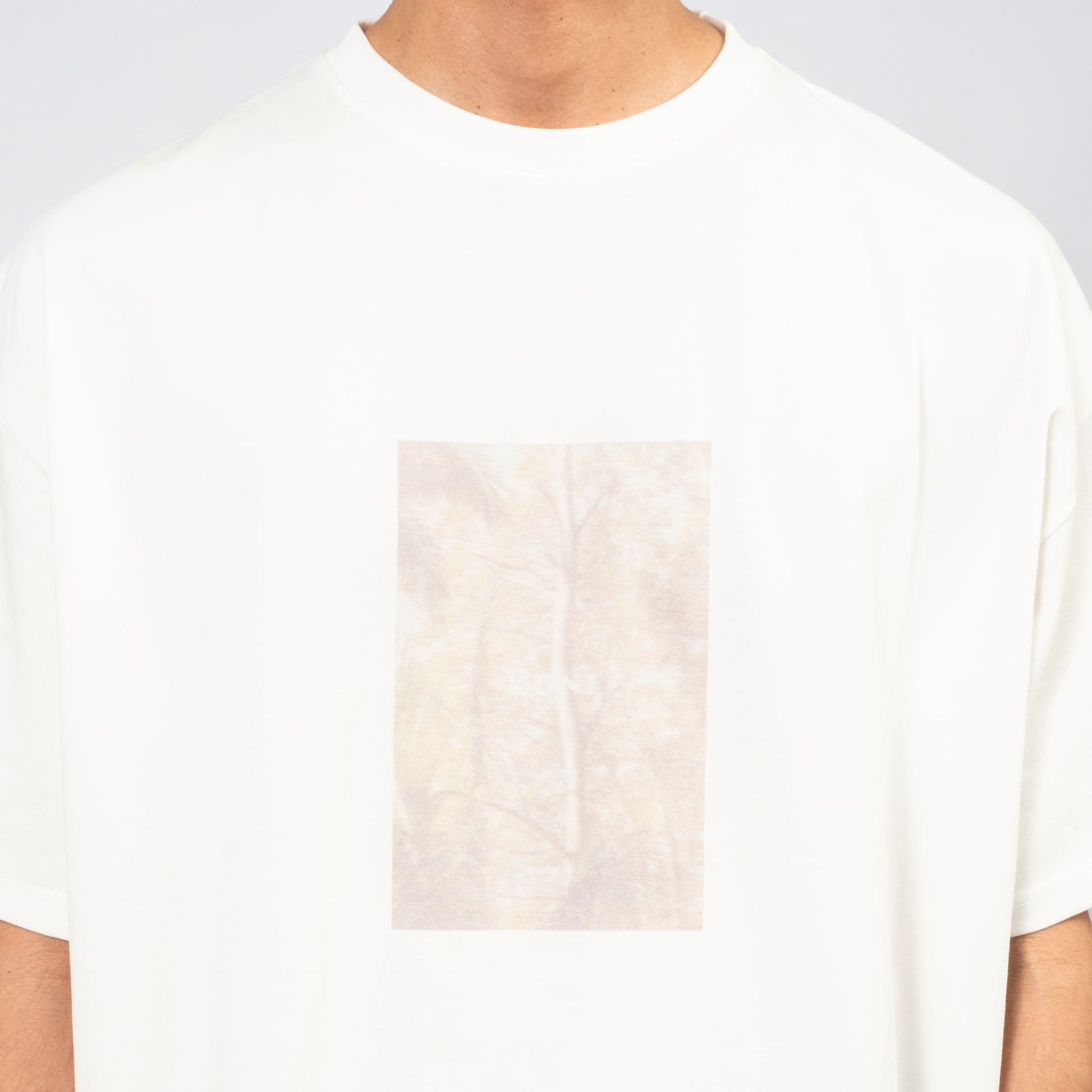 “Series of Memory” reflects the moments that shaped us, expressed through a eucalyptus print rendered in DTG digital printing for a vintage, natural atmosphere. The piece is cut from mid-weight cotton with a wide, boxy silhouette—substantial yet breathable, ideal for wearing alone or layered.