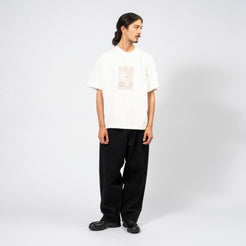 “Series of Memory” reflects the preciousness of time spent with loved ones—this piece inspired by a journey through Japan with my mum. The eucalyptus print, produced with DTG digital printing, carries a vintage, natural finish that mirrors the way memories can be vivid or hazy. Made from mid-weight cotton, it offers a breathable yet substantial feel, cut in a wide, boxy silhouette for a relaxed fit.