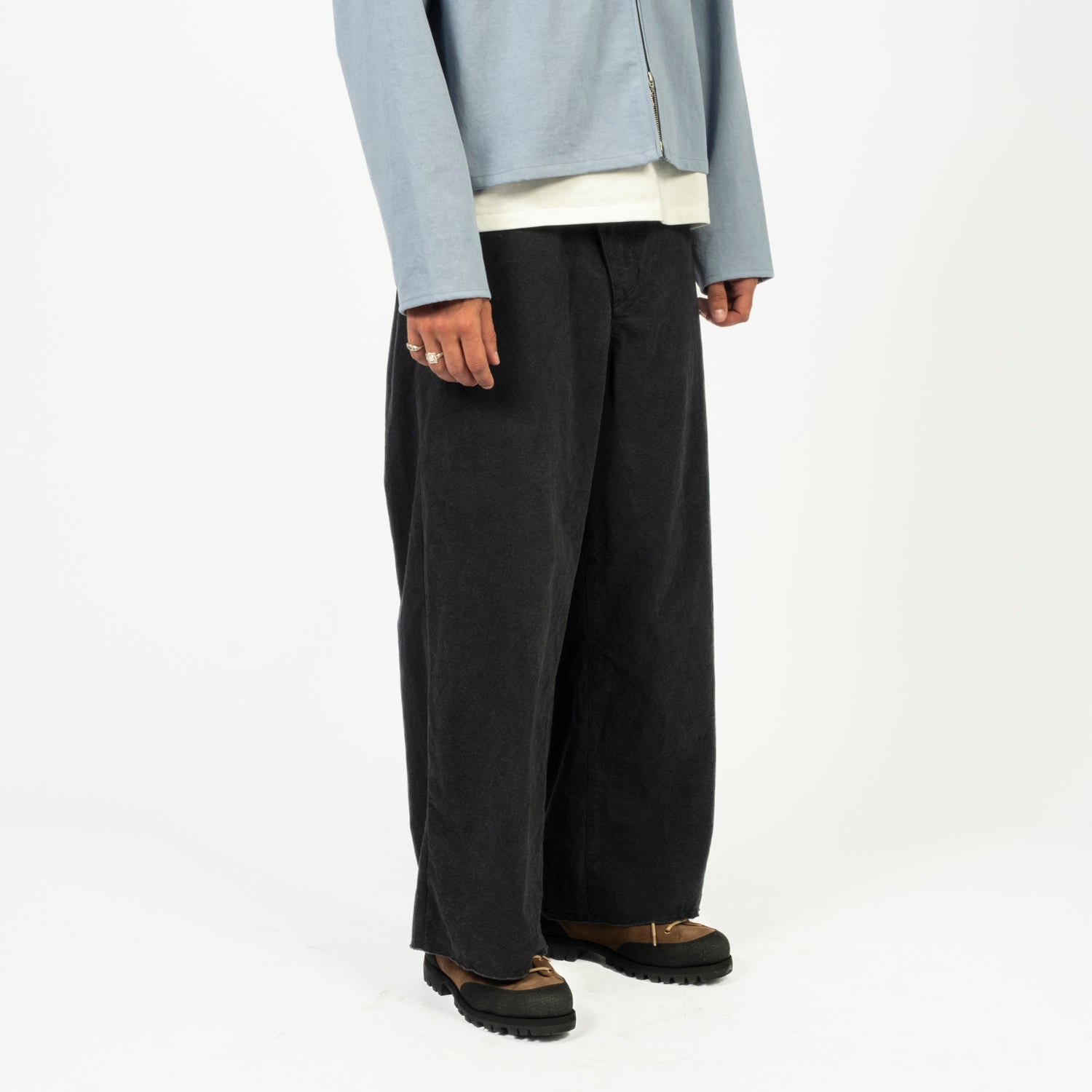 [MERELY MADE] PREMIUM COTTON CATION TWIST WIDE PANTS _ CHARCOAL GREY