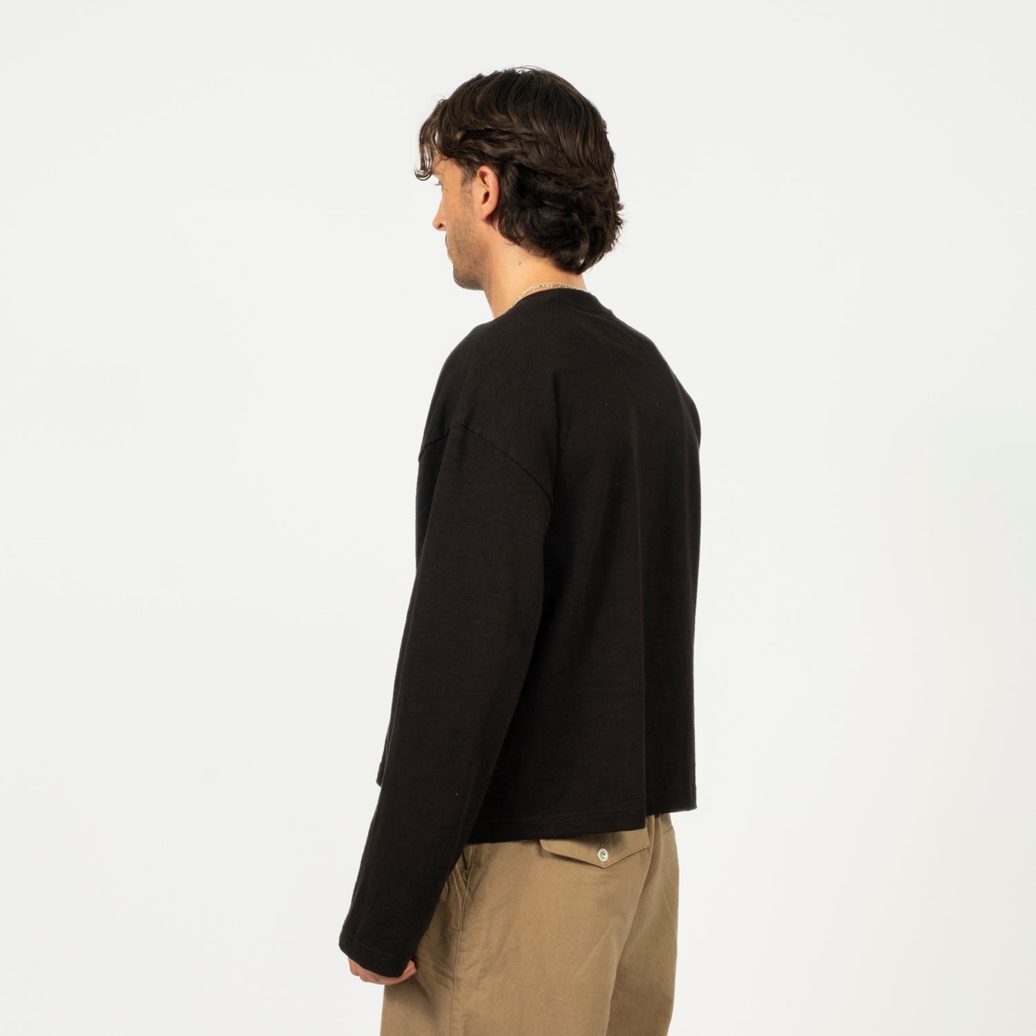 [MERELY MADE] PREMIUM SLUB JERSEY CROPPED T-SHIRTS _ COAL BLACK