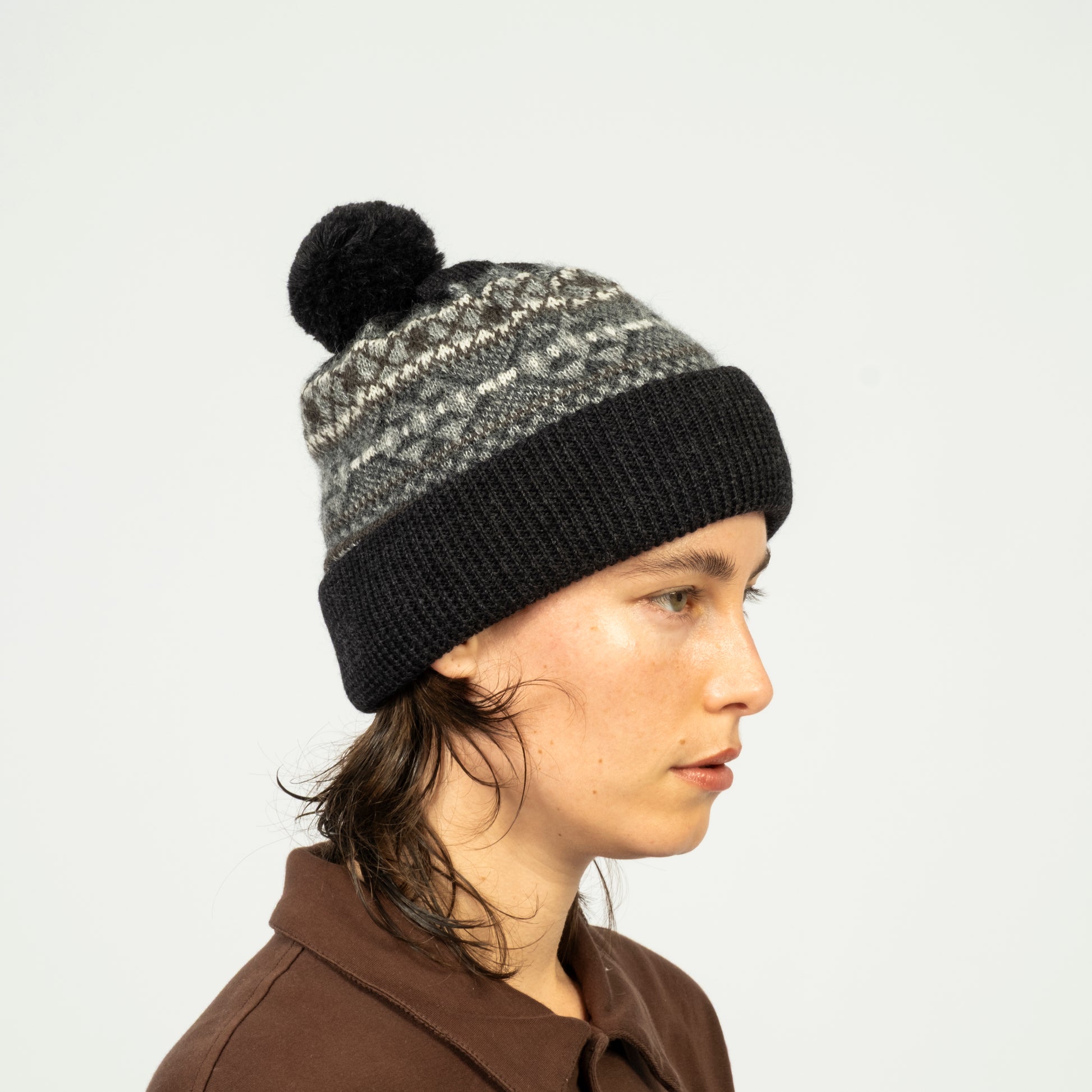 NINE TAILOR A Fair Isle knit hat finished in a balanced, understated colour palette. Select areas are woven wit...