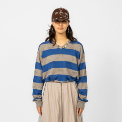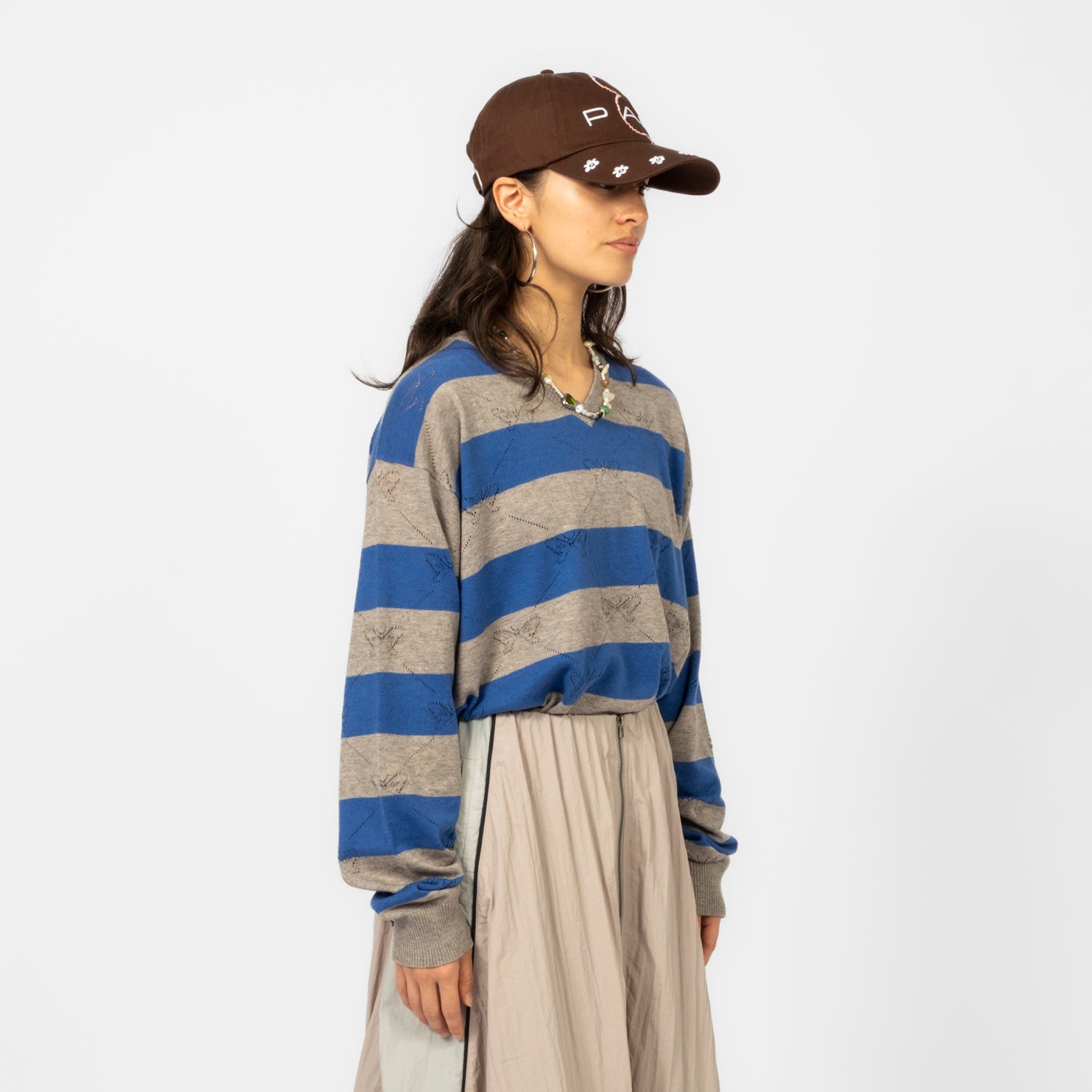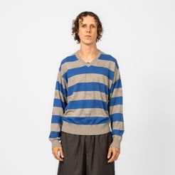[PAM] KALEIDOSCOPE KNITTED V NECK SWEATER _ GREY BLUE BELL