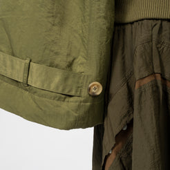 PAMA bomber-style jacket reworked with dramatic sleeves, layered frill details, and custom P.A.M. hardware. Collar ...