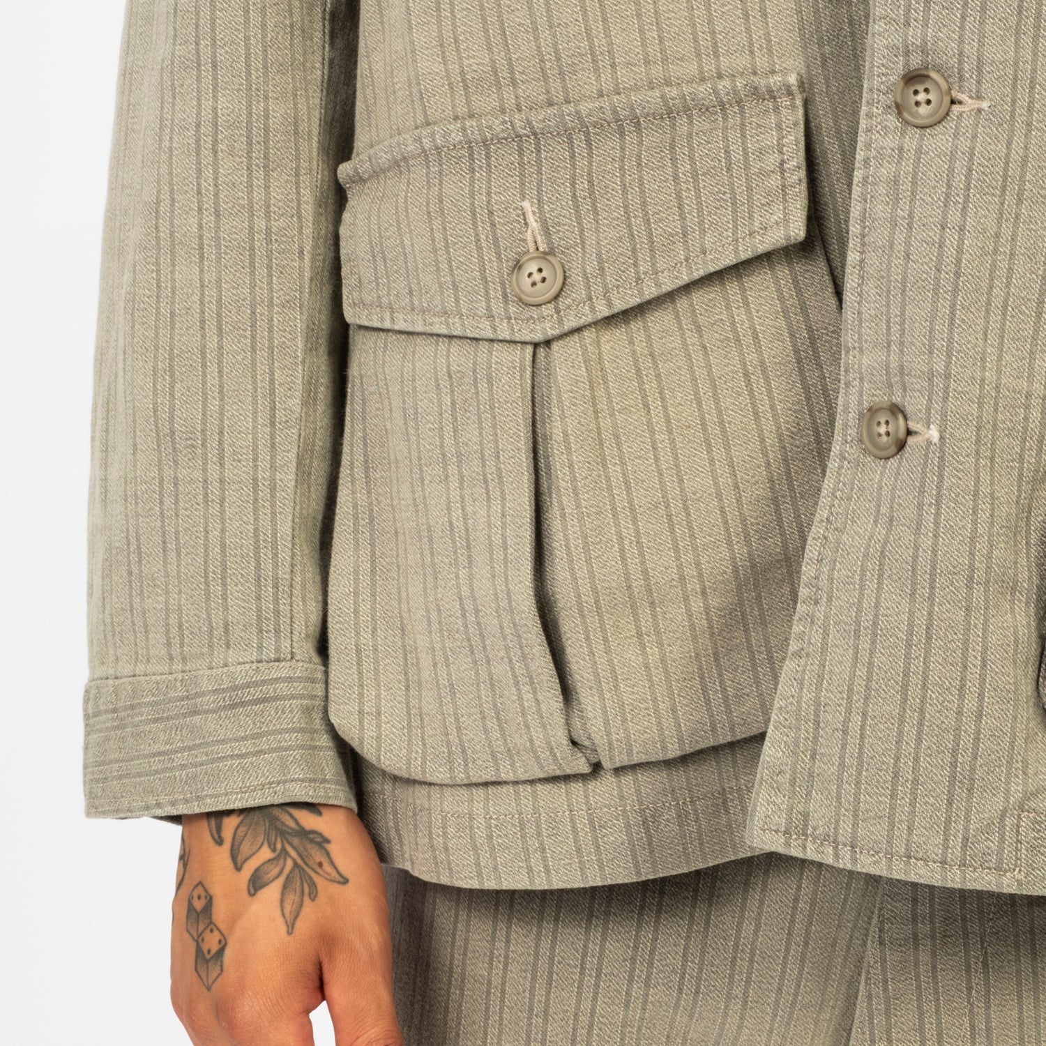 • FADED STRIPE stripe expression with vintage-inspired fading • Bingham jacket construction • Convertible collar for stand or open wear • Comfortable cotton fabric with gentle structure • Designed to develop character with continued wear • Matching pants available for a full set look