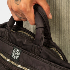 • Garment-dyed nylon construction • Colour and texture evolve naturally with wear • Designed to age beautifully over time • Colour transfer may occur with friction or moisture • Avoid contact with light-coloured clothing • Take care in rain, when sweating, or during prolonged contact • Store separately to prevent colour transfer