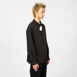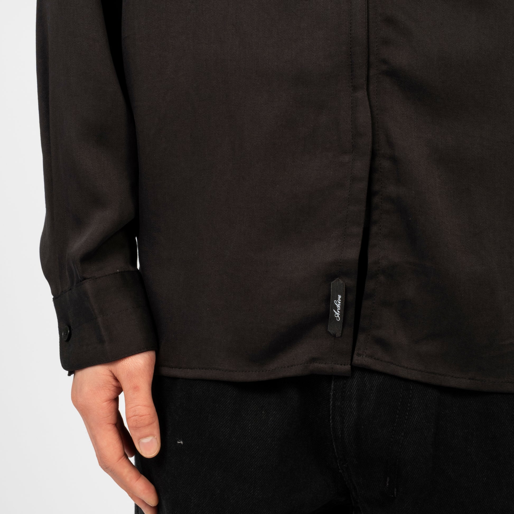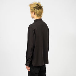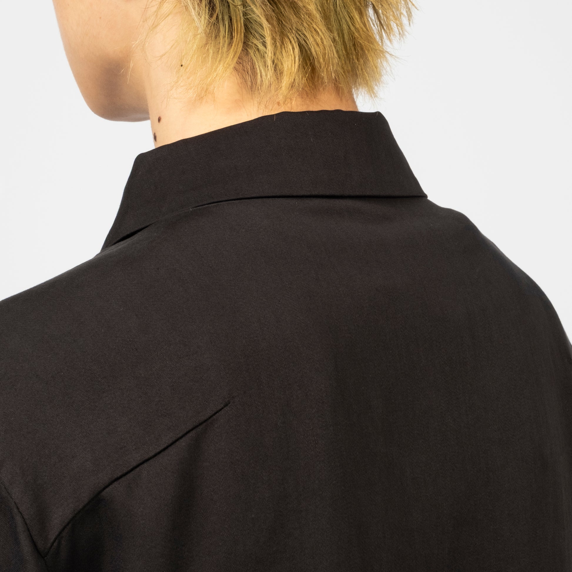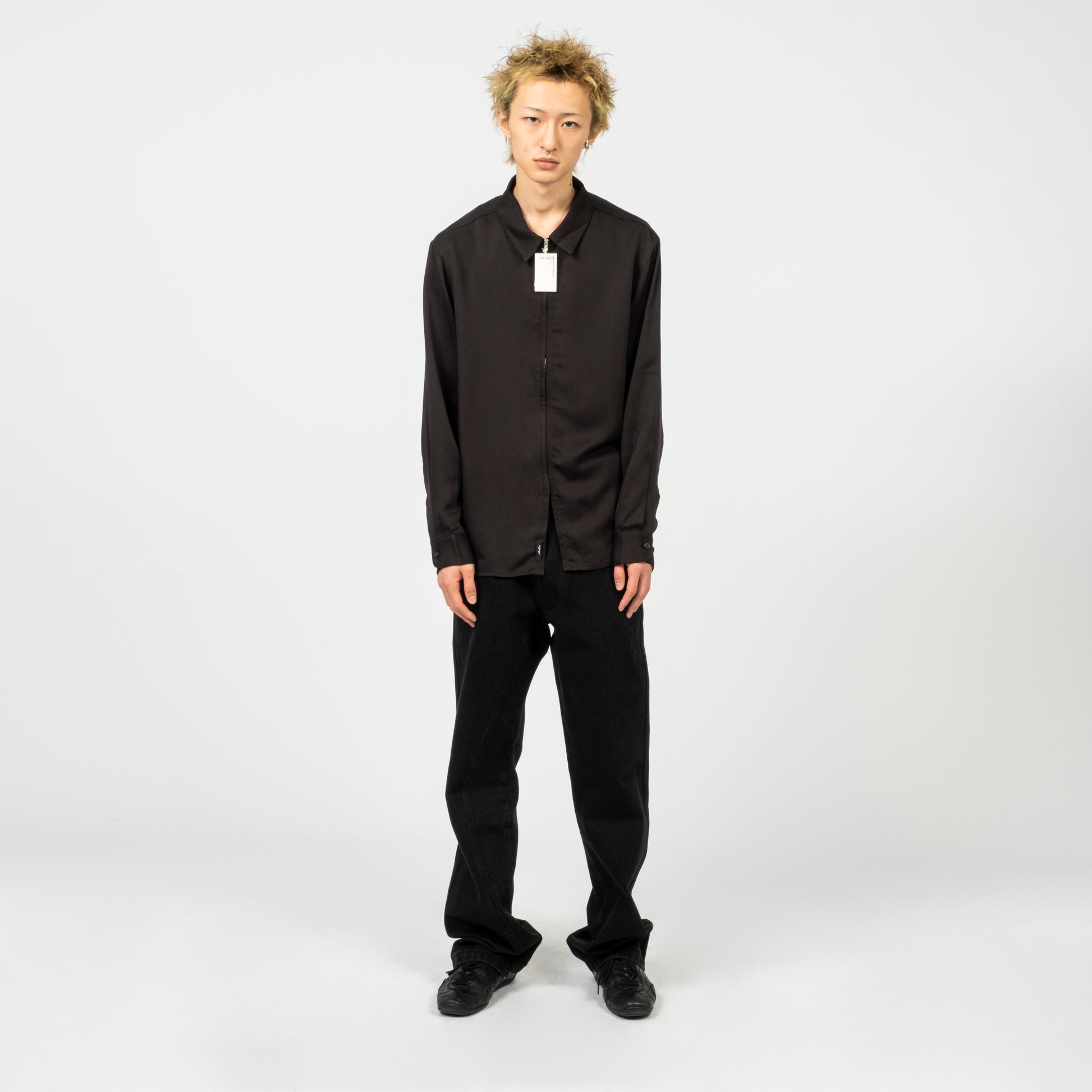 Straight point collar with front zip and concealed base placket. Finished with logo-engraved buttons, asymmetric cuffs, and ARCHIVE label at the right hem.
