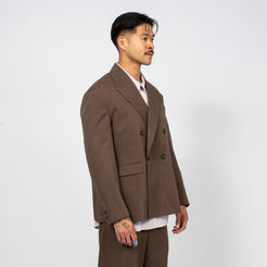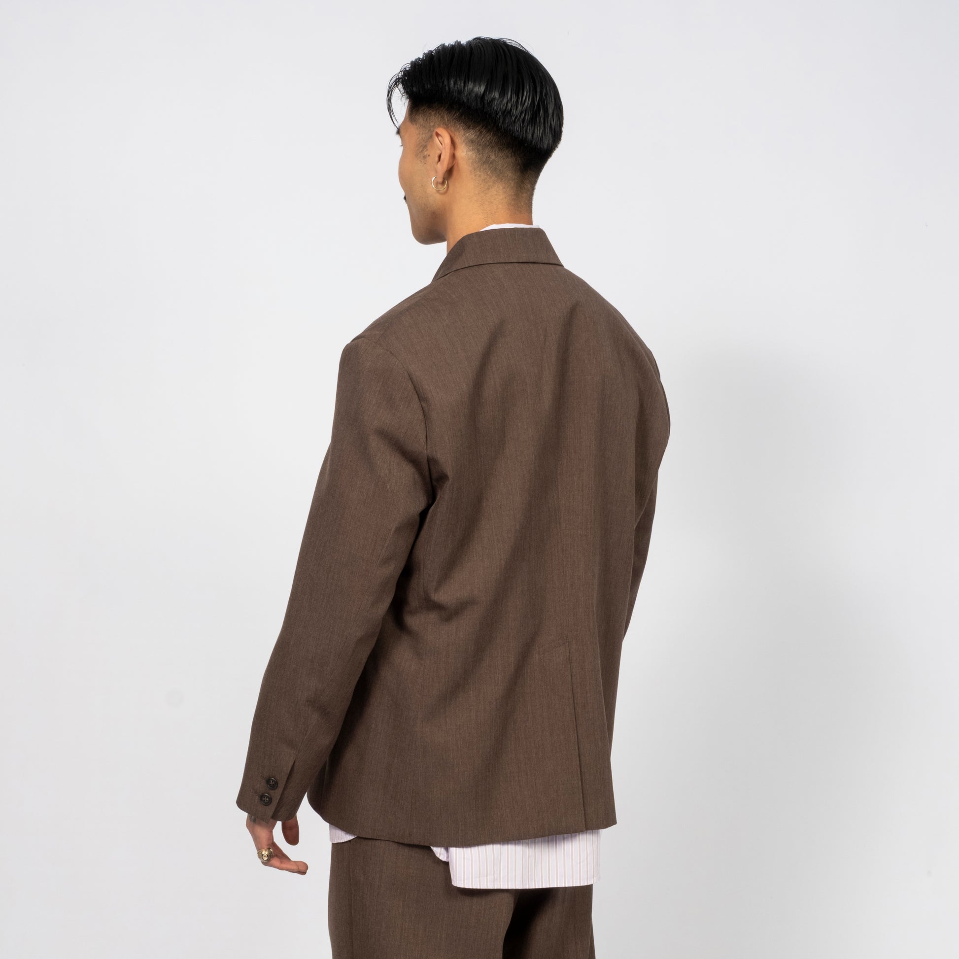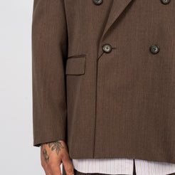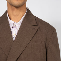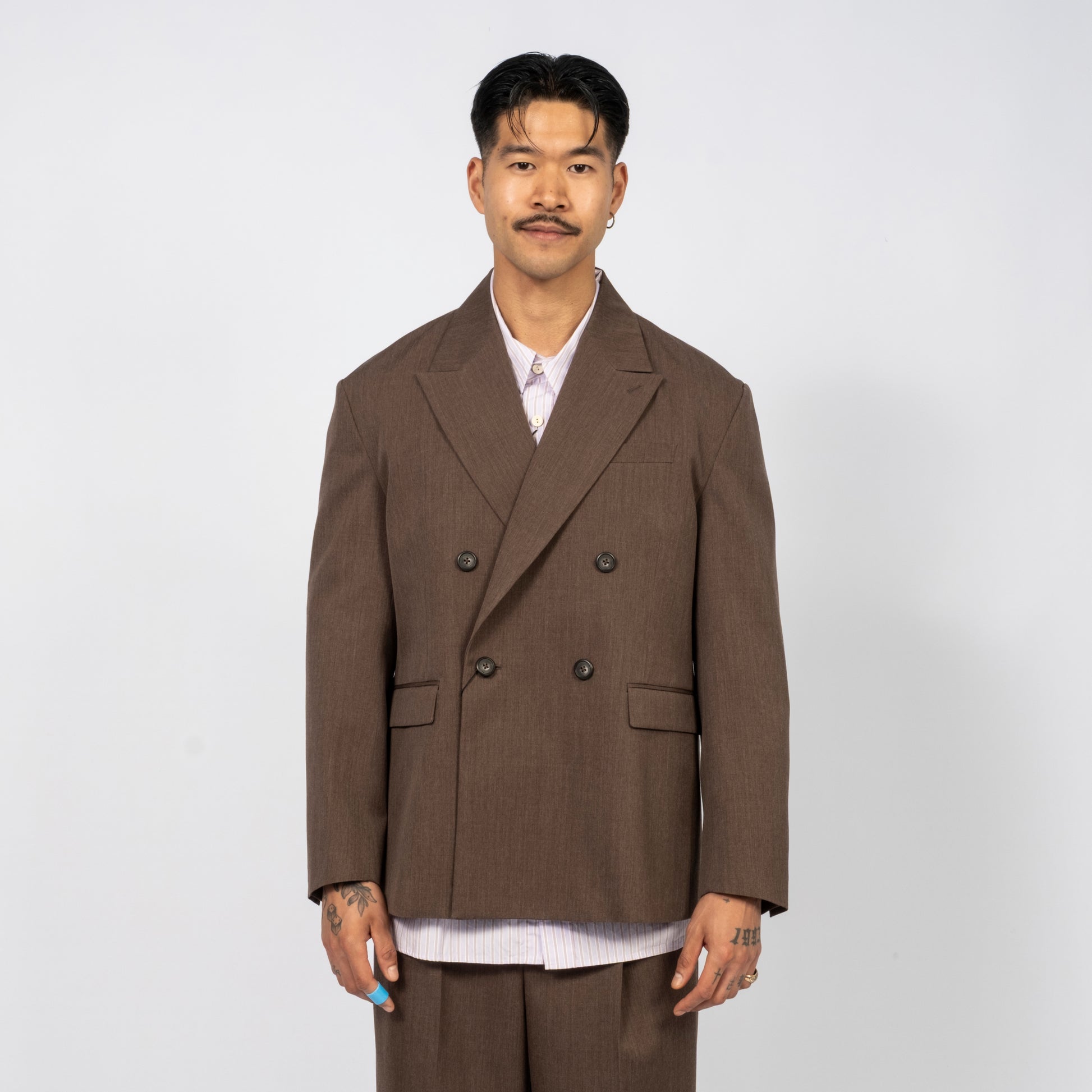A double jacket inspired by the story of a historic workwear brand. Crafted from tightly woven 60/2 wool yarn and finished with a urethane coating to create a distinctive resilience and crisp structure. The result is a jacket with balanced firmness and bounce, highlighting a clean, architectural silhouette.
