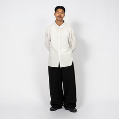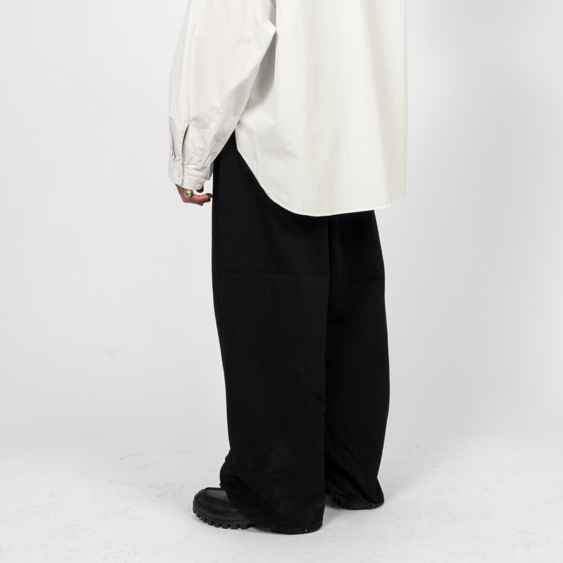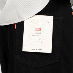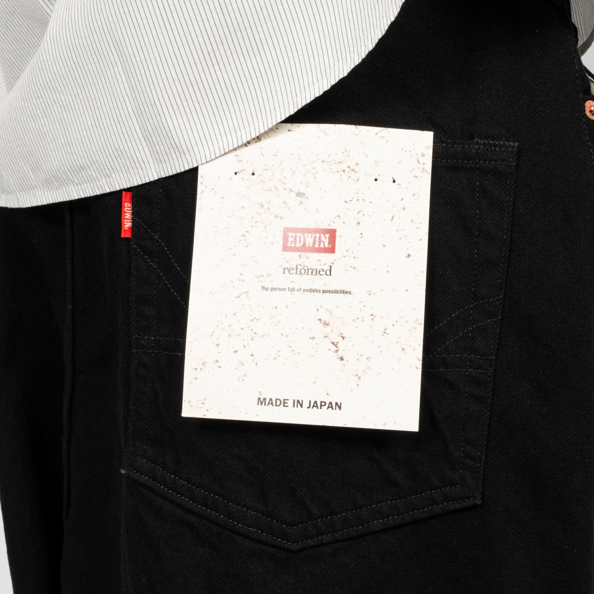 A collaboration piece with EDWIN, inspired by the era when the width of a craftsman’s trousers reflected individual character. This denim reinterprets that heritage through a refined, ultra-wide silhouette—balancing EDWIN’s classic detailing with Refomed’s signature form.