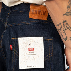 REFOMED A collaboration piece with EDWIN, inspired by the era when the width of a craftsman’s trousers reflected indi...