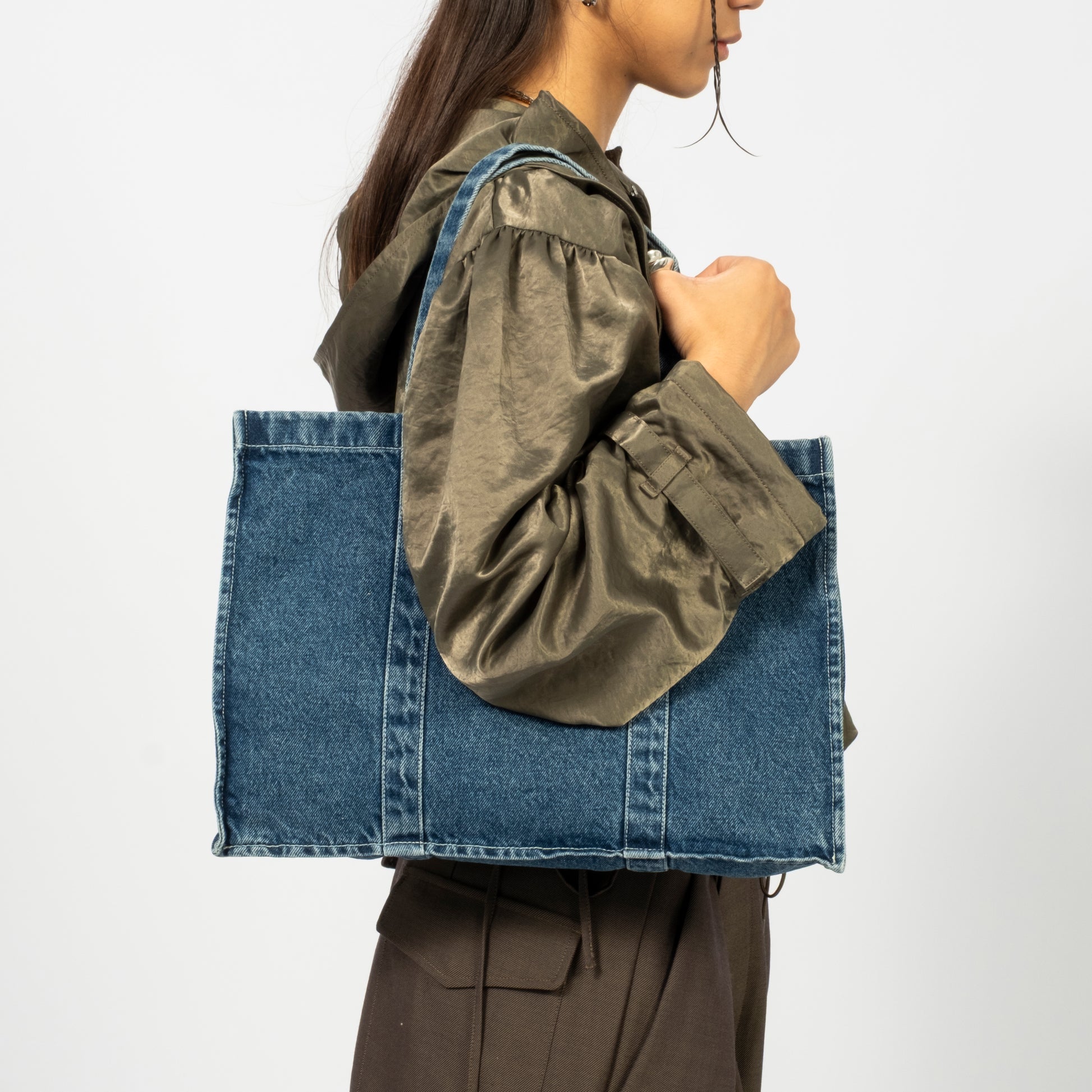 A new RHODOLIRION tote crafted from lightweight yet durable cotton twill, designed with a wide base and a roomy interior that comfortably fits a 17-inch laptop. The long 45 cm handles sit naturally on the shoulder, making it an easy everyday carry. Finished with the signature swallow embroidery for a quiet, recognisable detail.