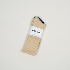 ROTOTO A nostalgic take on everyday essentials — these waffle-knit crew socks are made on traditional non-computerize...