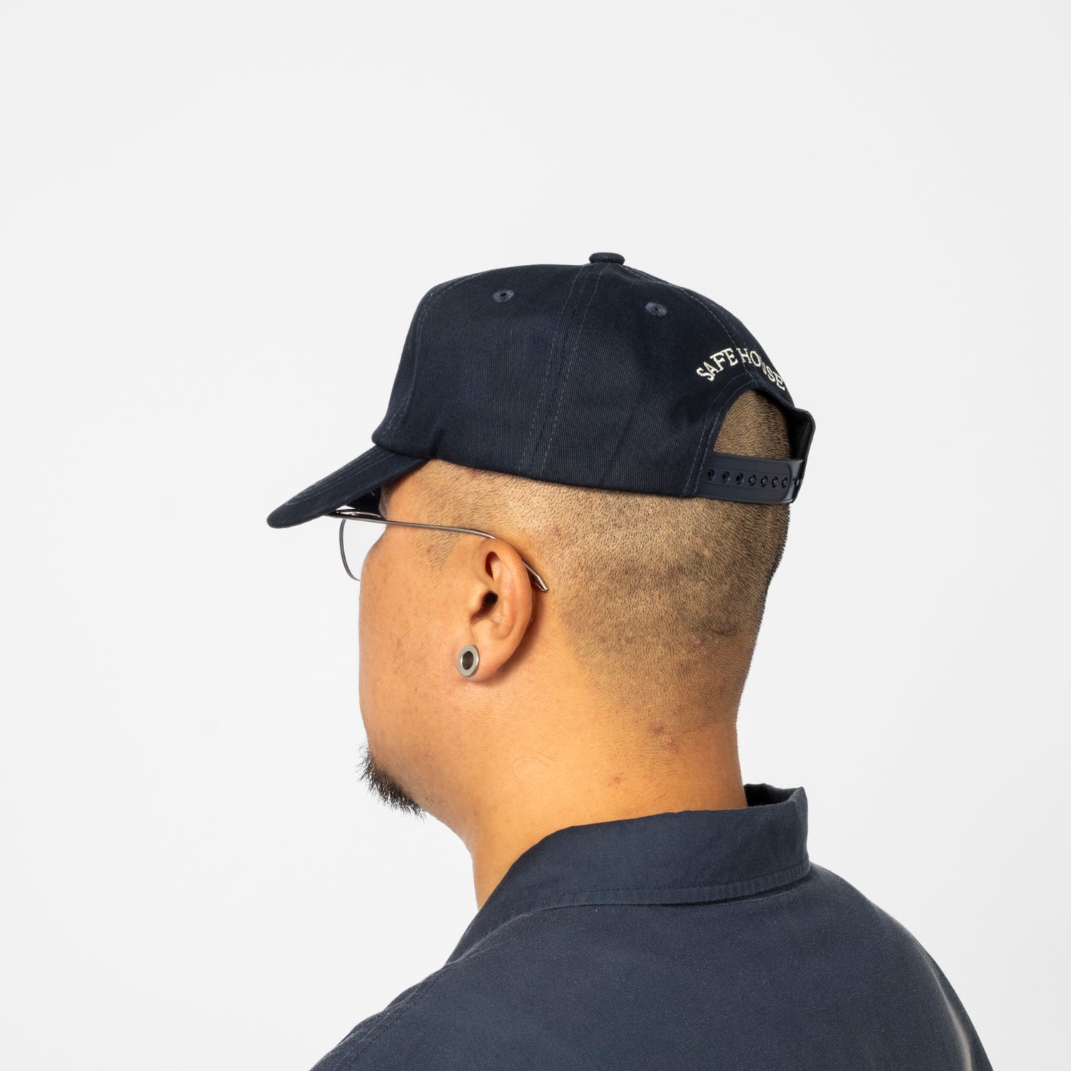 SAFE HOUSE An unstructured 5-panel cap with a mid-profile silhouette and a classic snapback closure.