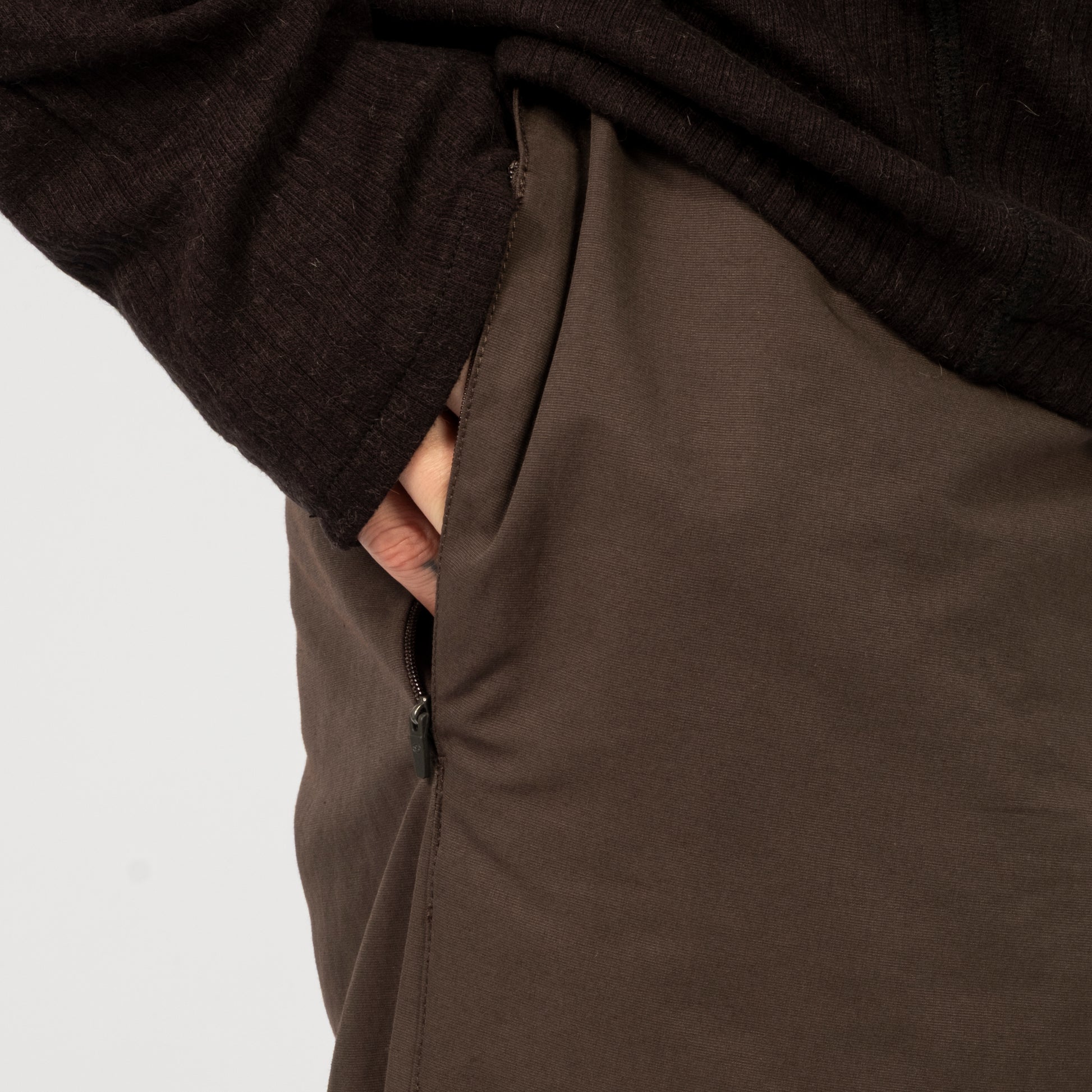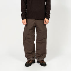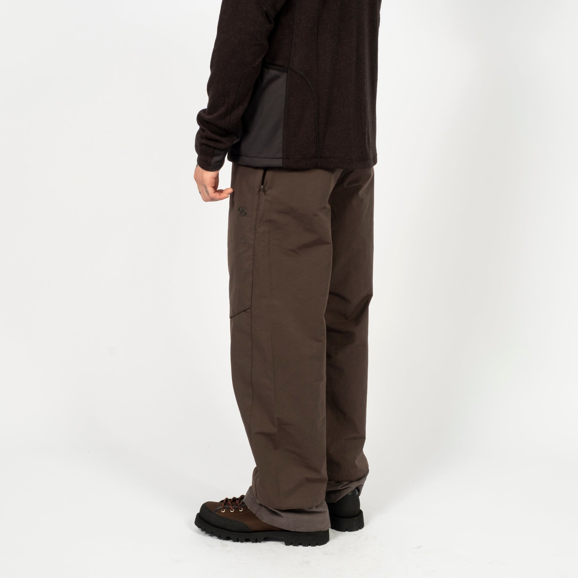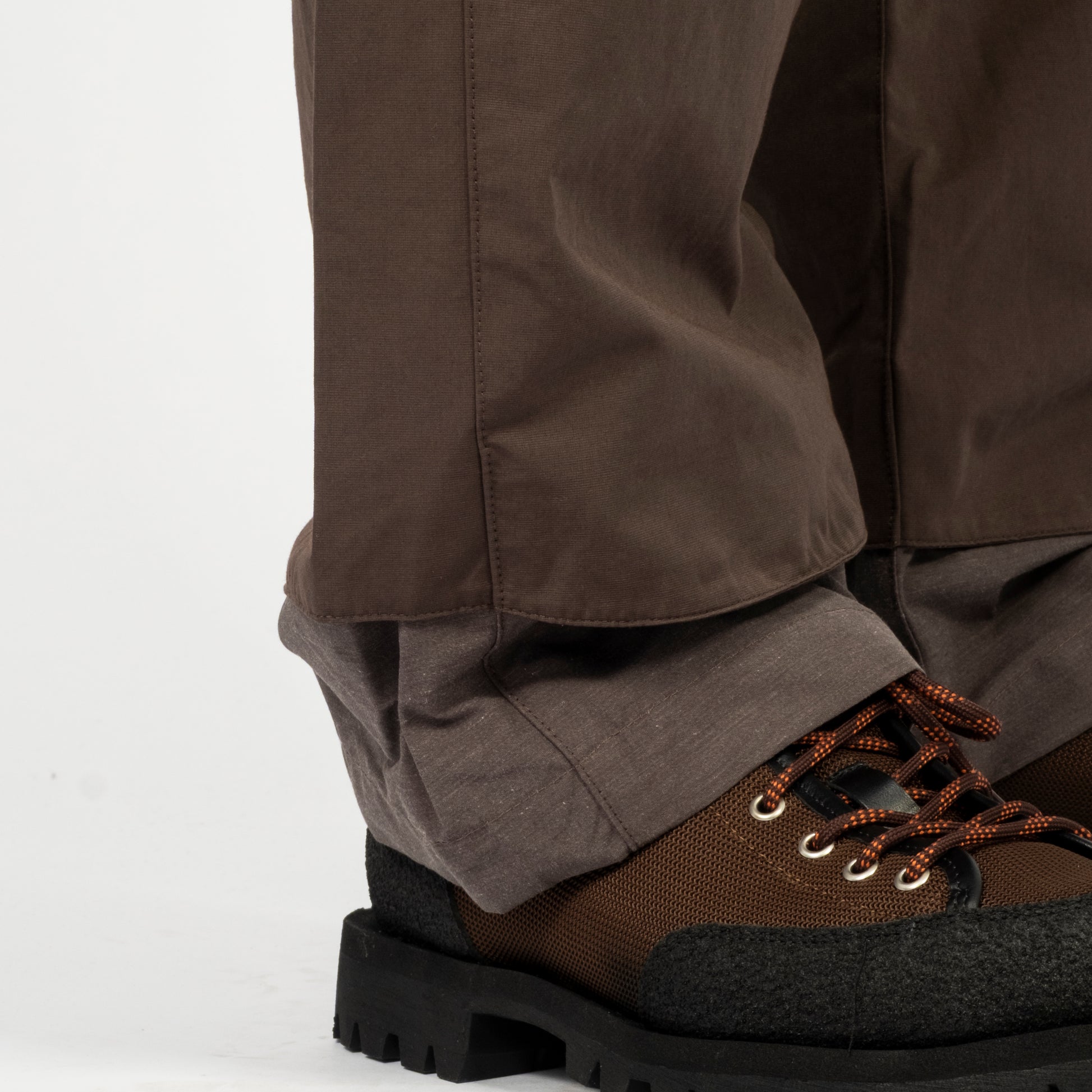 A utility-driven pant with layered function and subtle graphic touches. Clean hardware, concealed storage, and ventilation points keep it practical, while the colour-blocked hem and signature embroidery add quiet identity.