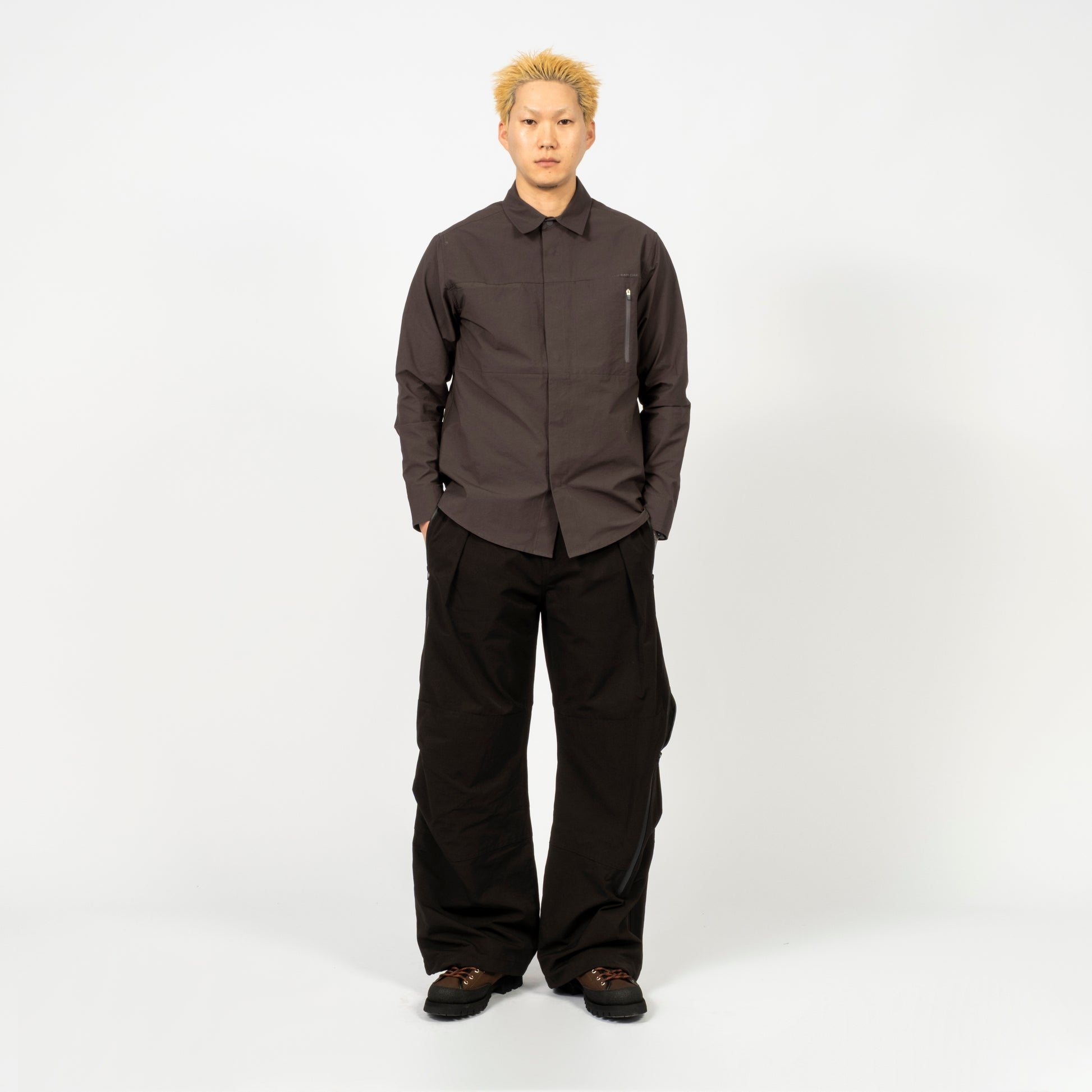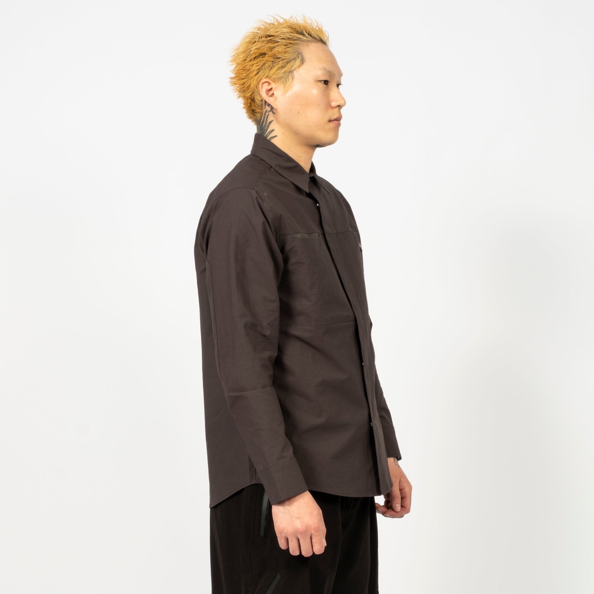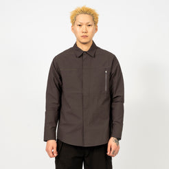 A functional everyday layer with subtle contrasts and utility touches. The clean front is accented by brand typography, while practical pocketing and inner-sleeve detailing add quiet character.