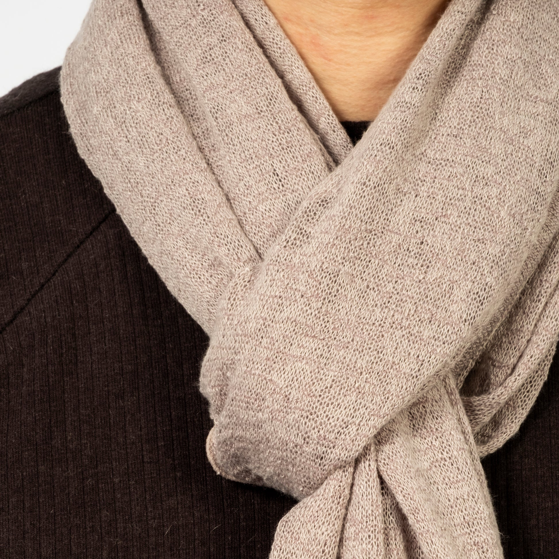 SAN SAN GEAR A lightweight, finely knitted scarf designed for effortless layering. Its soft, delicate texture drapes ...