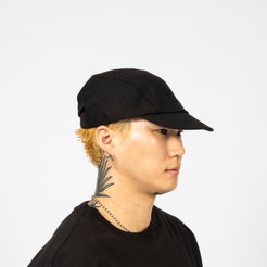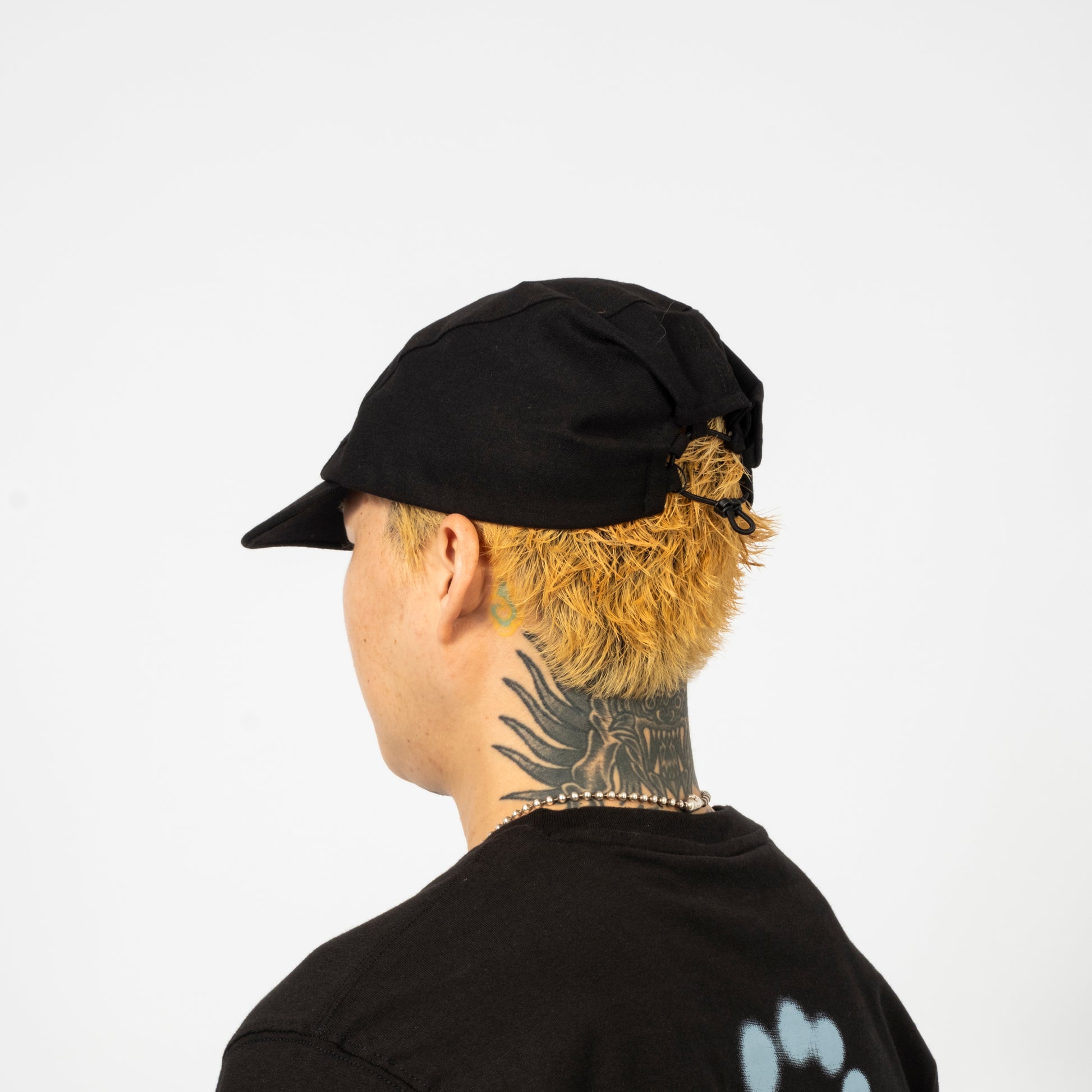 • Soft-touch wool–rayon blended fabric • Natural silhouette enhanced by shirring details • Adjustable circumference via stopper • Sansan Gear font embroidery at the back