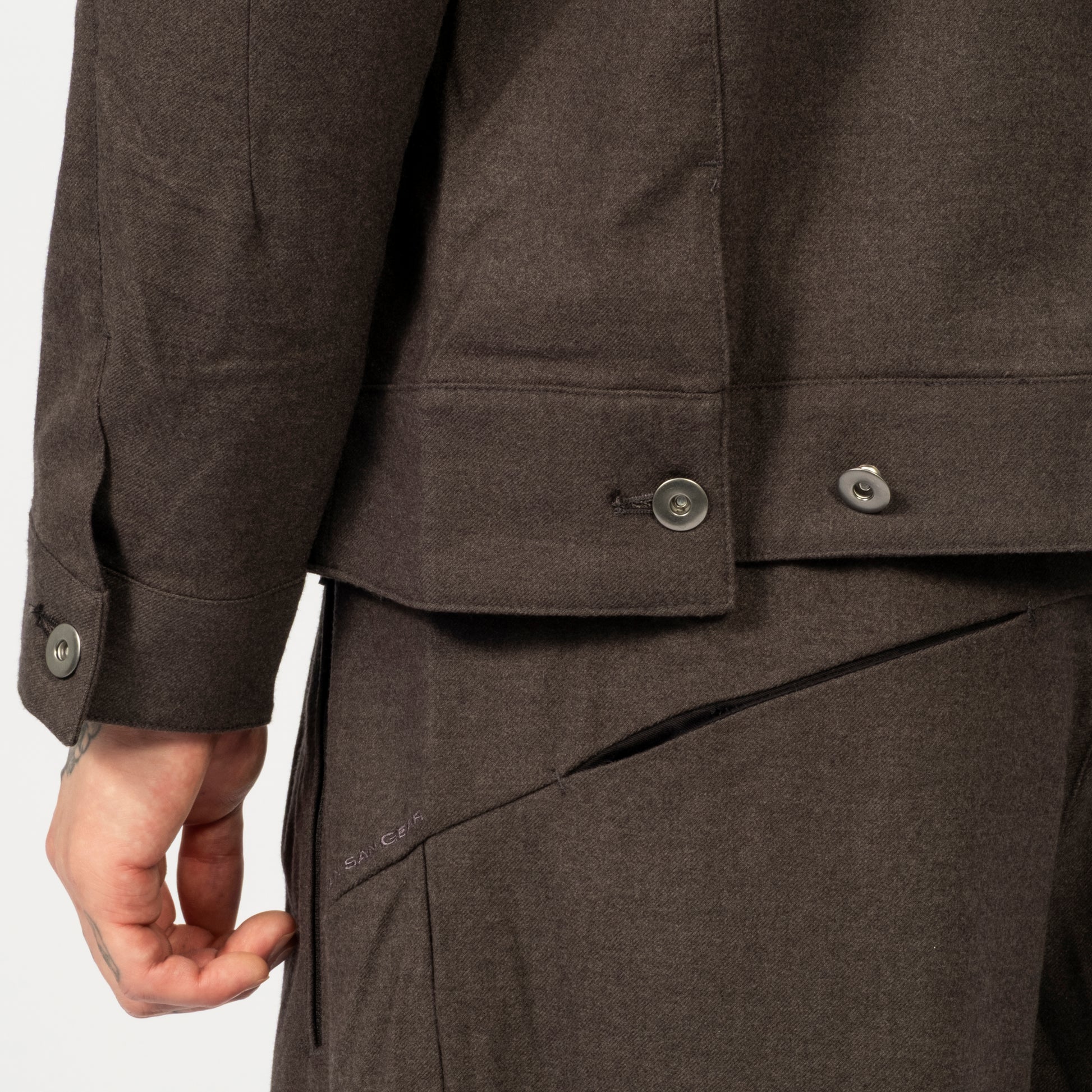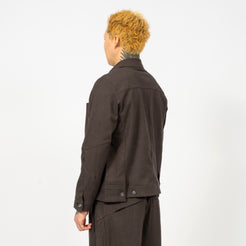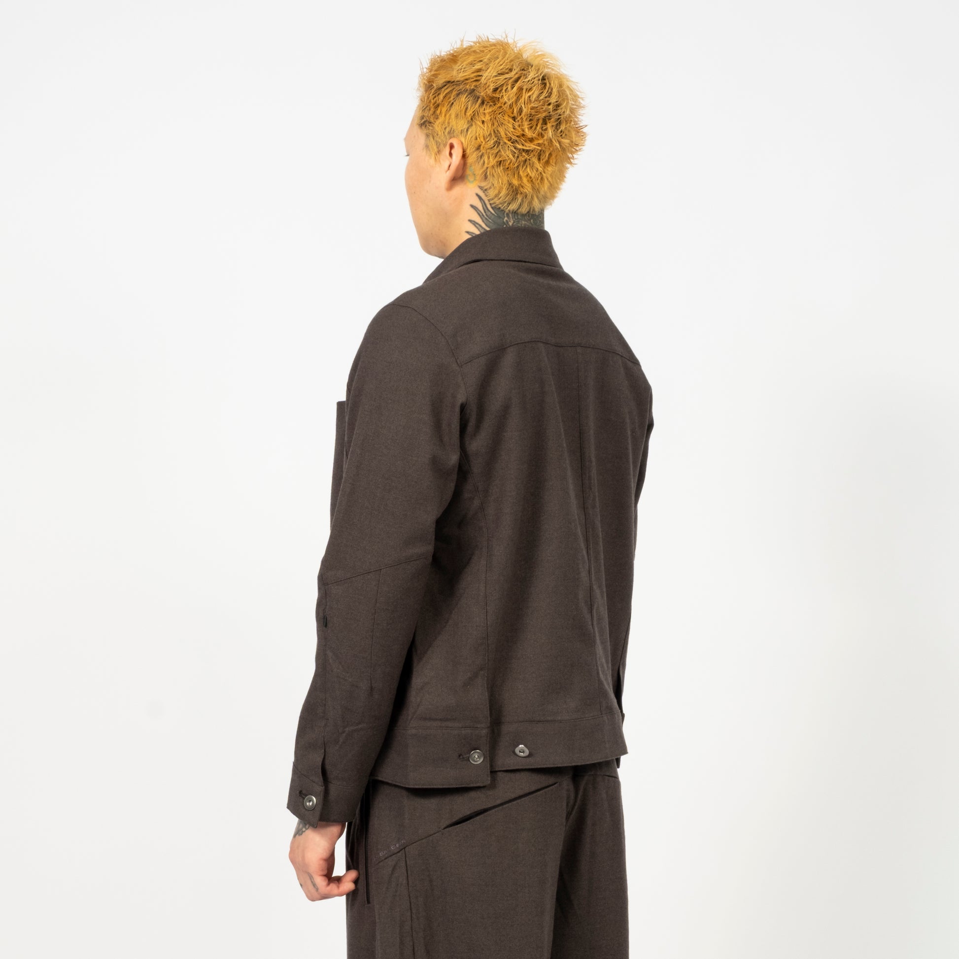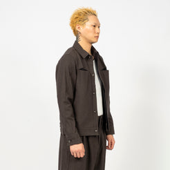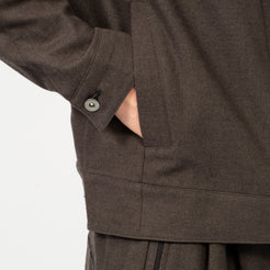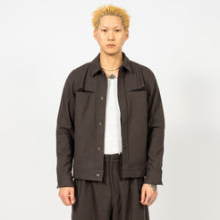 A clean, structured take on everyday jacket with subtle functional details. The hidden front construction keeps the silhouette minimal, while contrast-lined elements and discreet storage add depth without disrupting the refined finish.