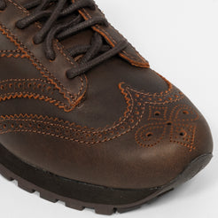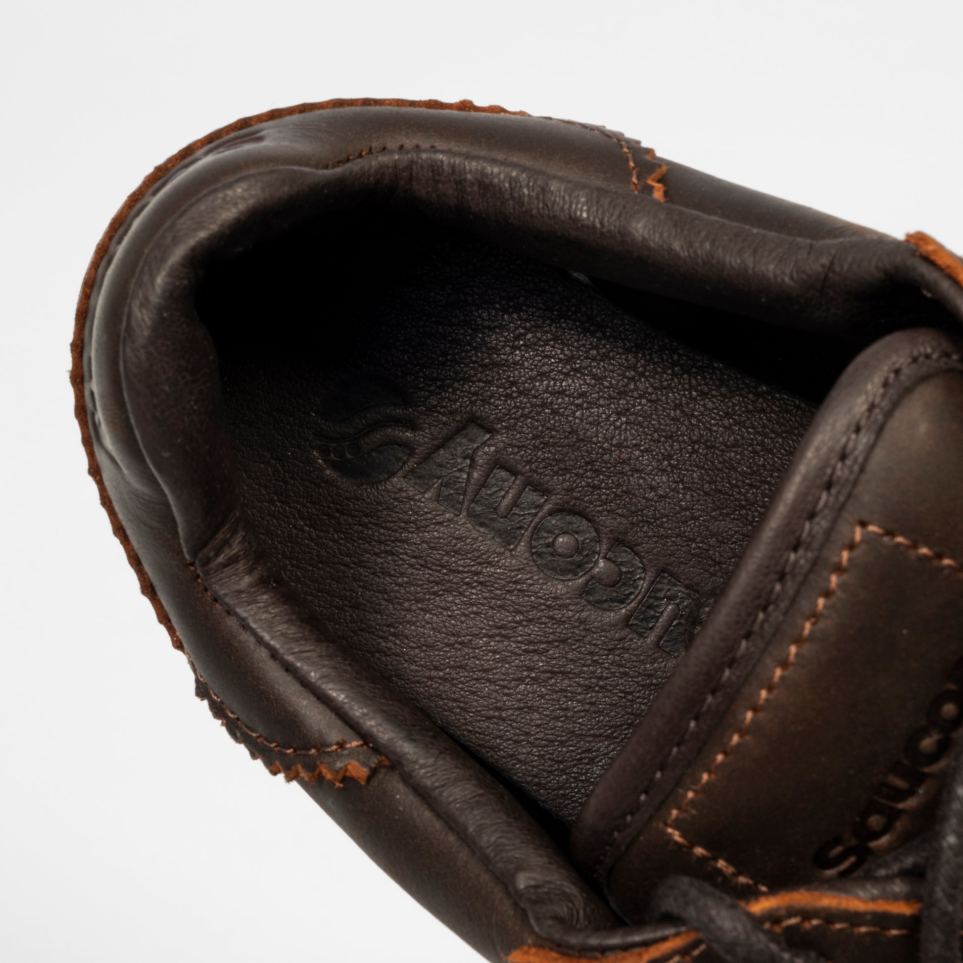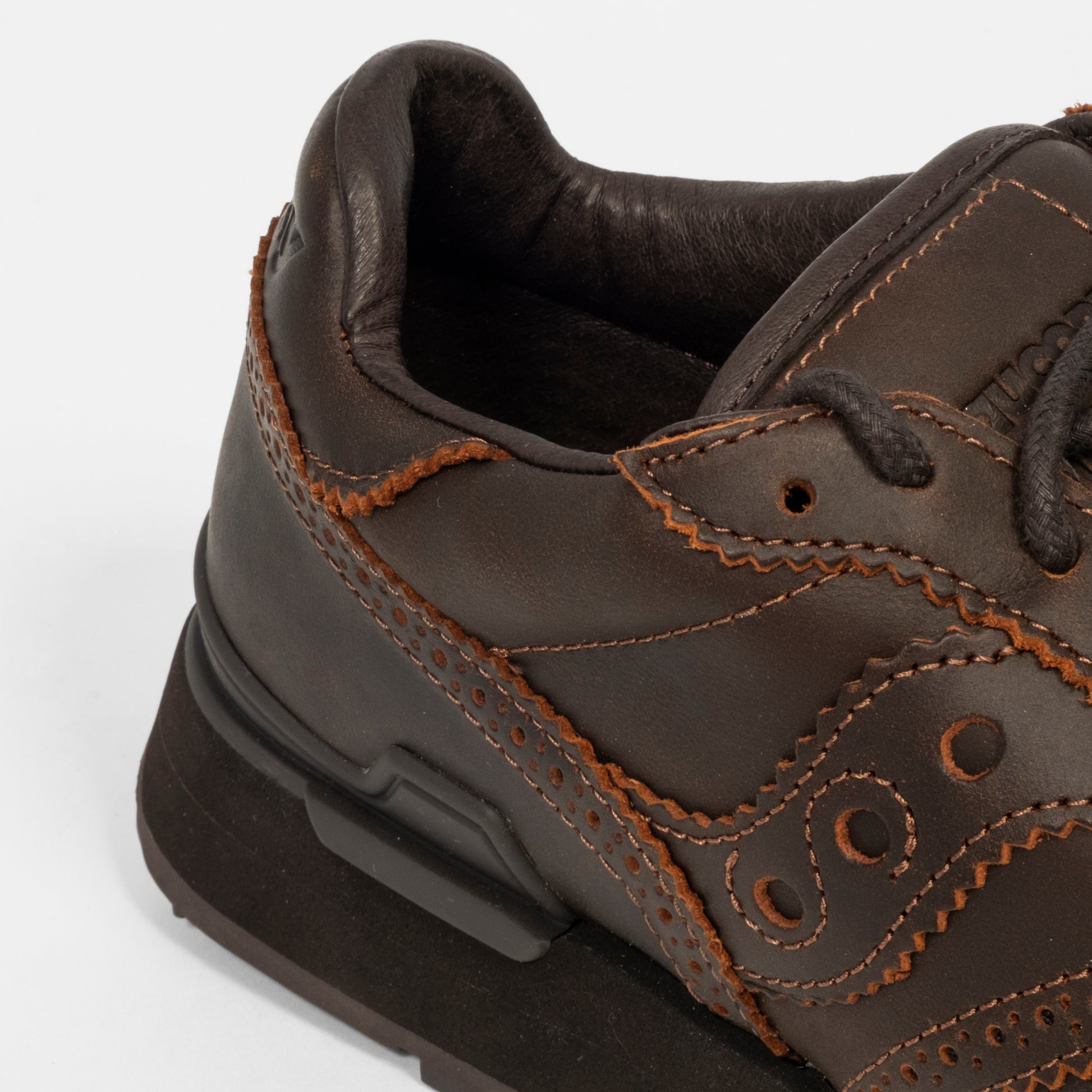 Where heritage running meets refined tailoring. Engineered Garments elevates the Saucony Shadow Originals with full-grain leather and brogue-inspired wingtip details—bridging street sensibility with formal sophistication. A study in contrast and craft, designed for those who blur lines and redefine classics.