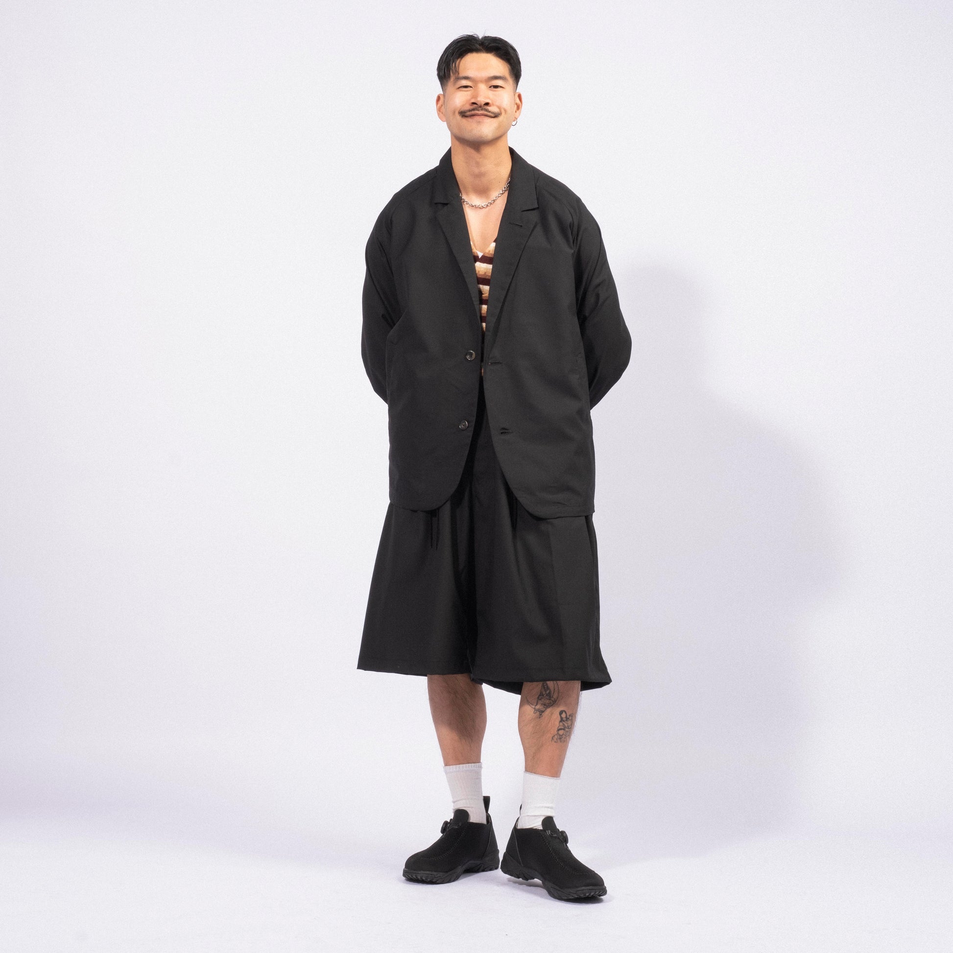 The Short Pants offer the identical features and functionality of our classic Circular Pants, boasting a round and comfortably loose fit, two stylish side tucks, a waistband with elastic, doubled drawcords, and tasteful shell buttons. Crafted from the finest Tropical Wool, a lightweight summer worsted wool, these pants prove exceptionally adaptable and suitable for a wide range of climates.
