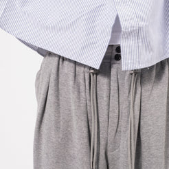 Sillage teamed up with mocT, a brand that has been challenging & developing difficult to manufacturate fabrics, such as dyed cotton or blending different materials. For this project, we elaborated with mocT a unique French Terry, slightly thicker than the previous version. The Circular Pants are Sillage's roundest and widest pants with a comfortable waist, 2 tucks on sides, waist rubber & drawcord.