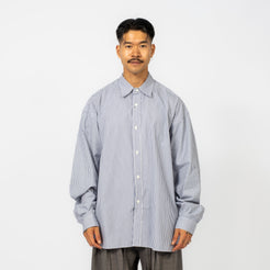 [SILLAGE] WIDE SHIRT HIGH COUNT _ NAVY STRIPE