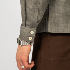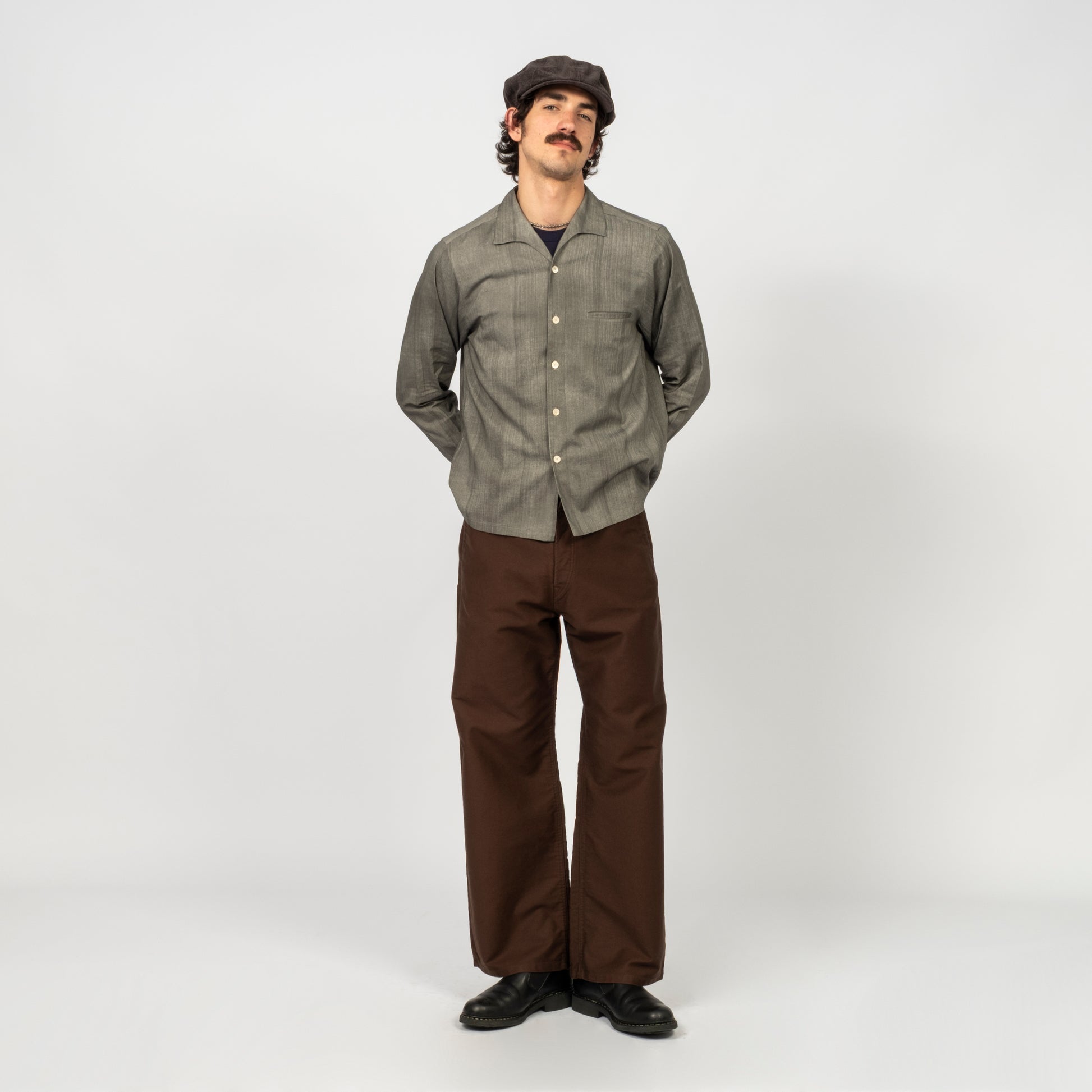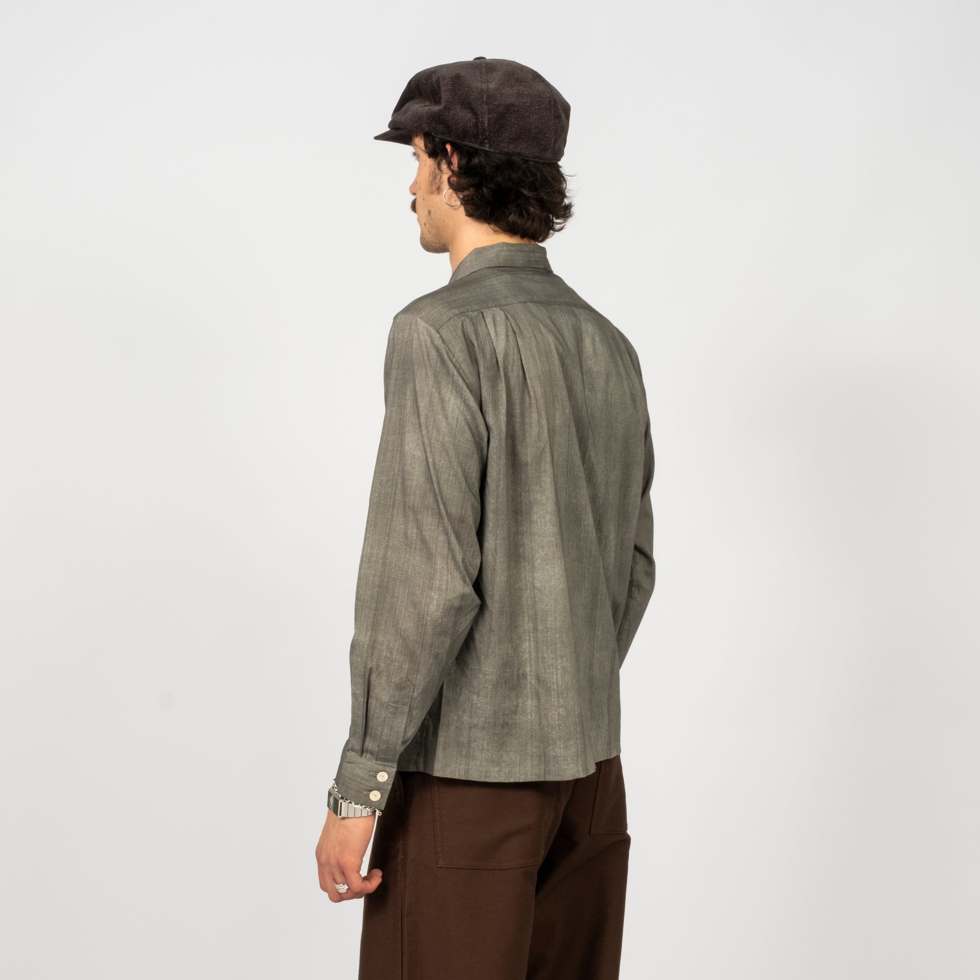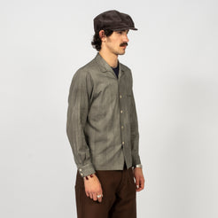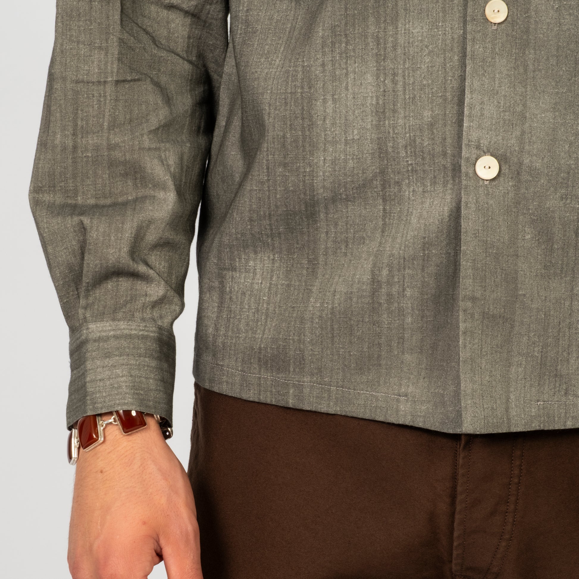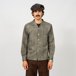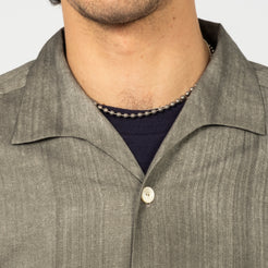 An Italian-collar shirt inspired by the post-war resort style, known for its soft, curved opening that gives a relaxed feel before T-shirts became common resort wear.