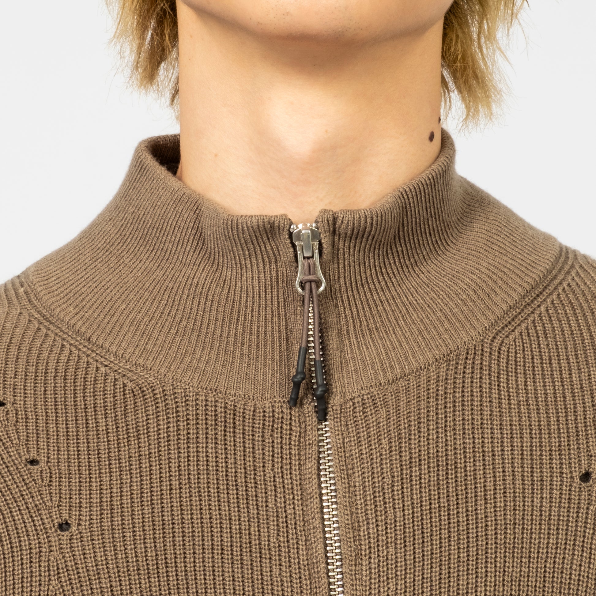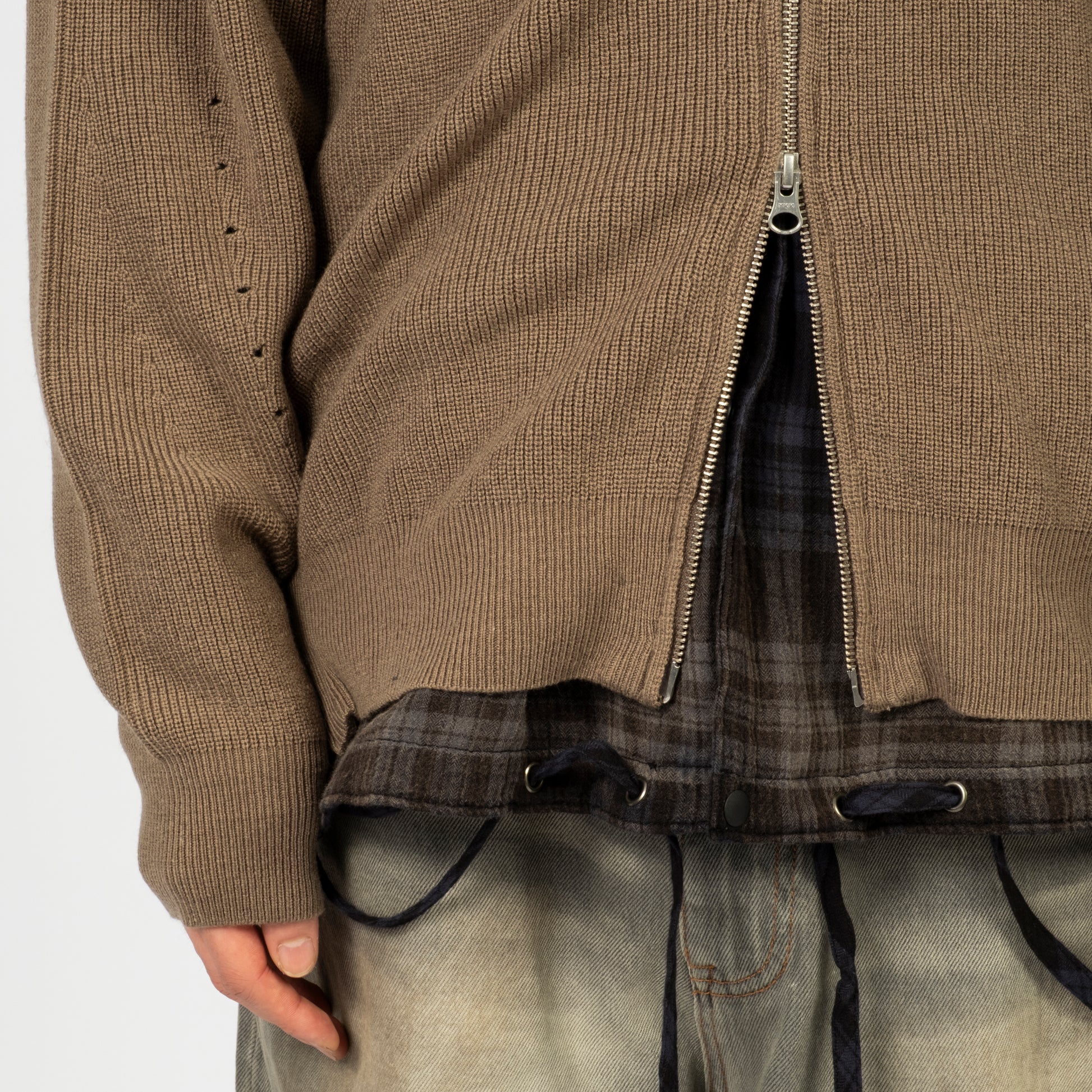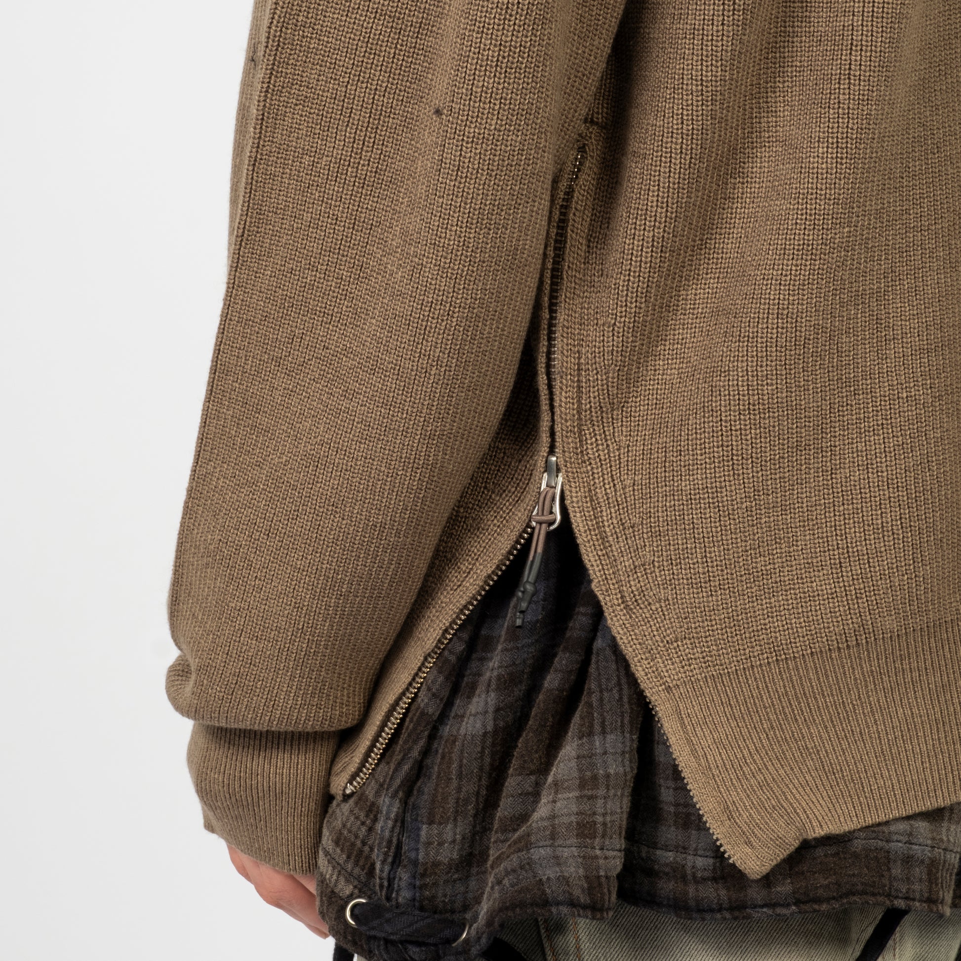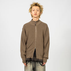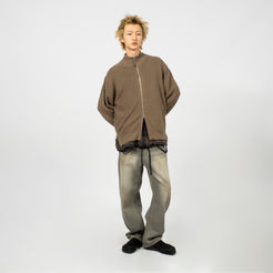 A softly structured knit zip-up with a relaxed silhouette, finished with ribbed edges for warmth and texture. The two-way zipper and side zip detail add quiet functionality, making it an easy everyday layer.