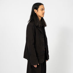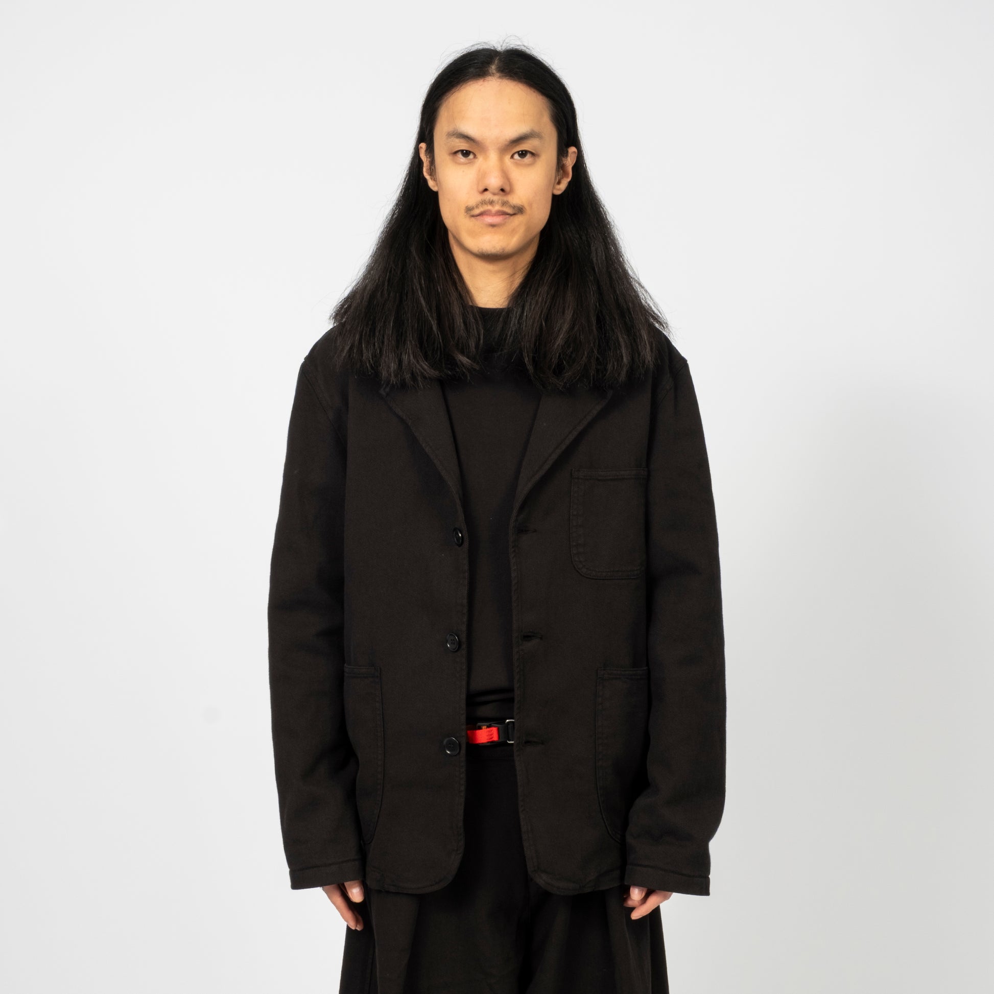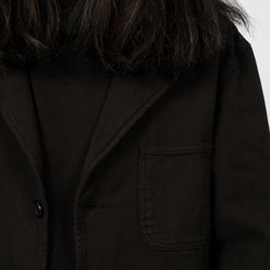 A relaxed interpretation of the classic blazer, crafted from indigo organic cotton for a soft, natural feel. Featuring patch pockets and corozo buttons, its half-lined construction offers light structure and everyday ease.