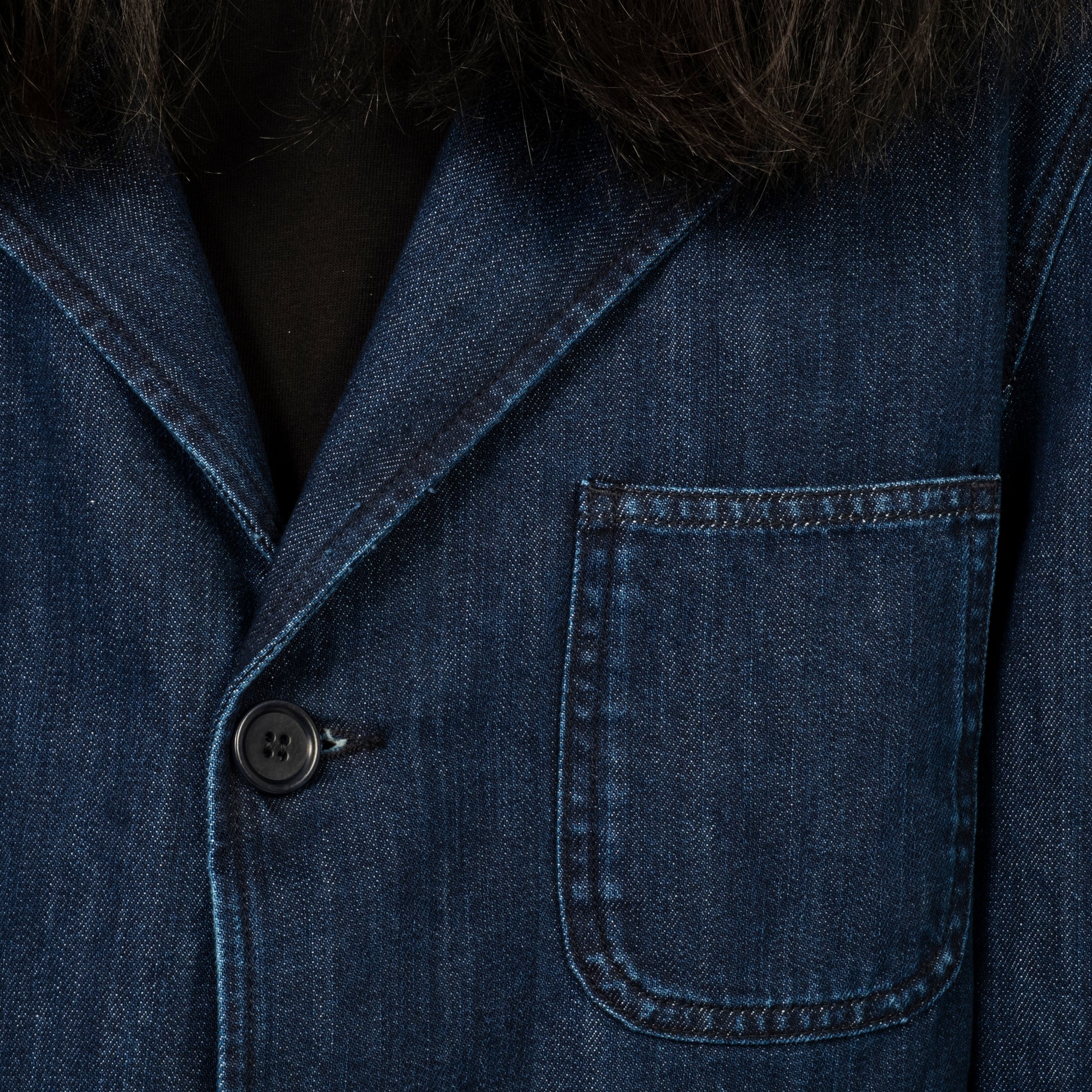 • Indigo organic cotton • Single-breasted design • Chest and lower front patch pockets • Corozo button fastening • Half lined, regular fit