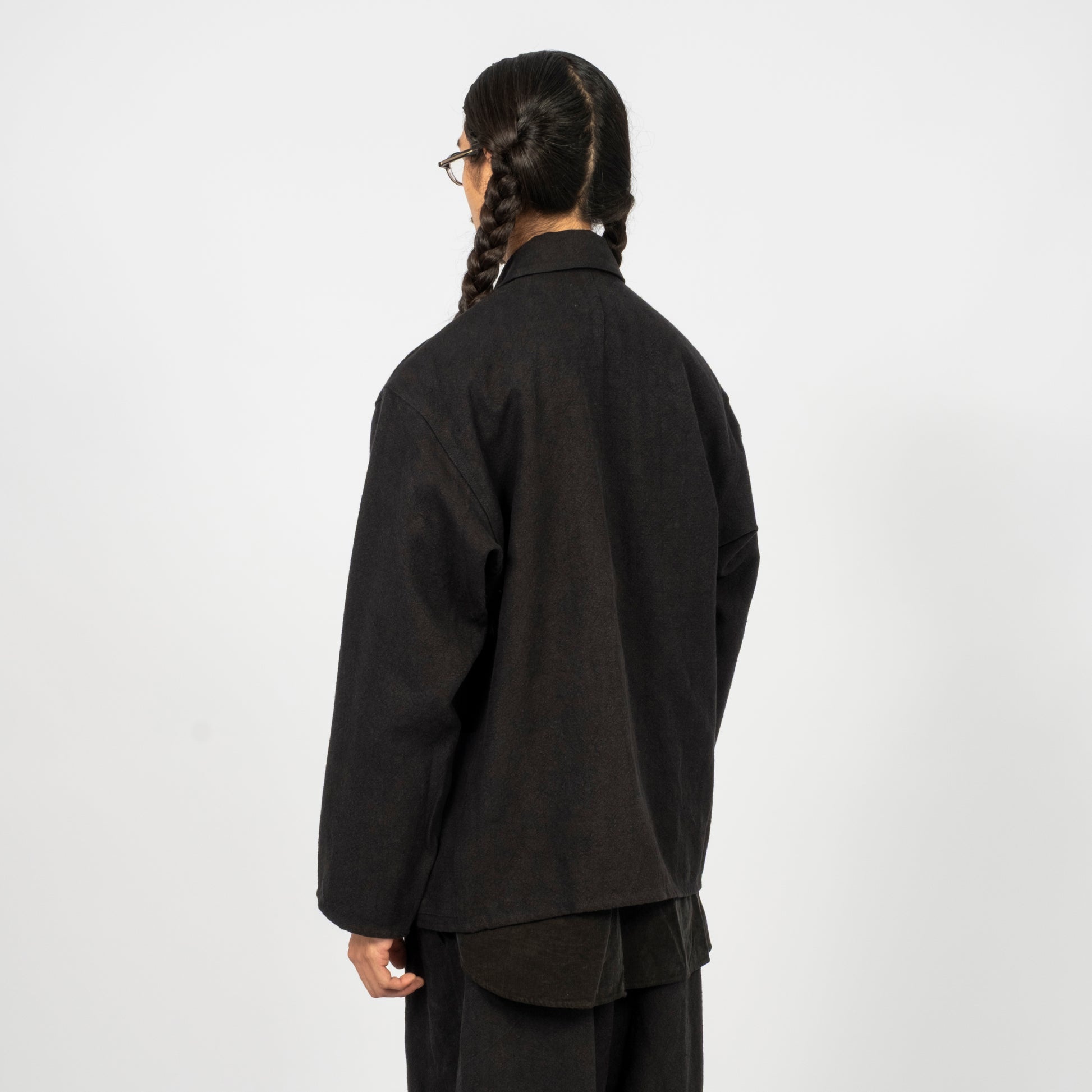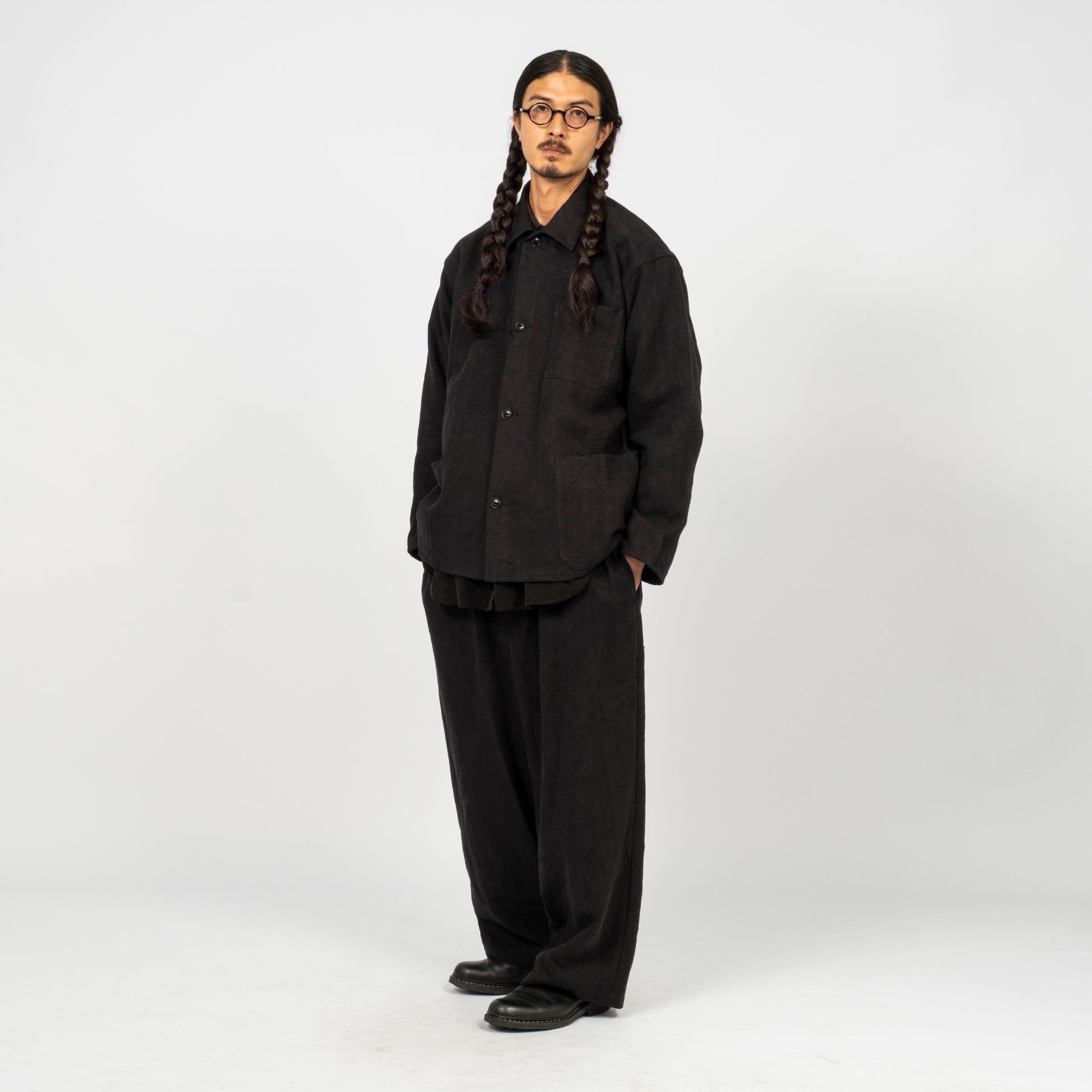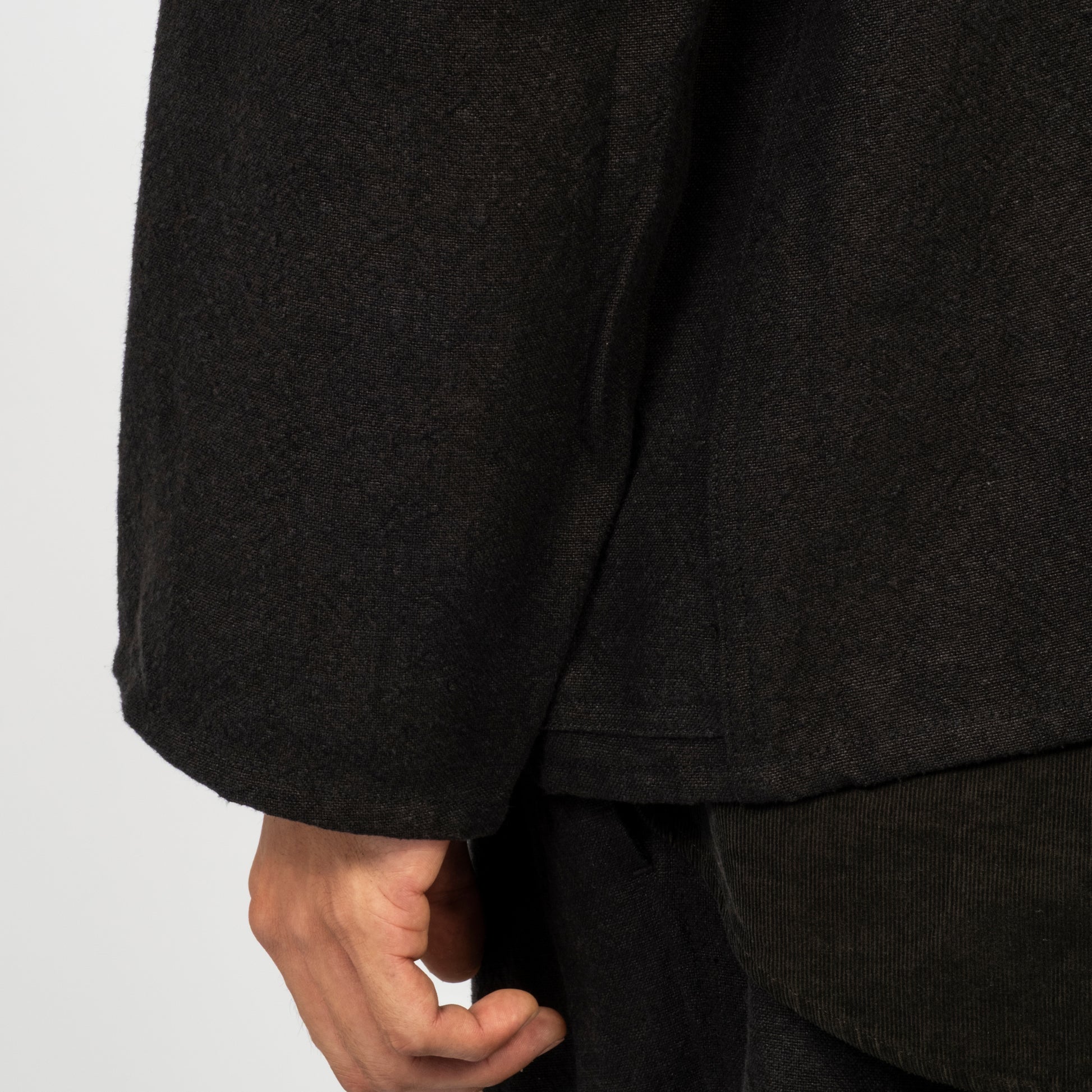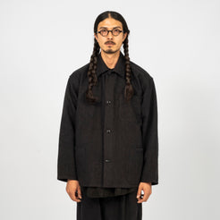 A coverall inspired by the simple house-brand pieces of an earlier era, designed with large pockets for effortless carry. Made from an original Bishu-woven hemp fabric crafted on old shuttle looms, then softened through a nidom process for natural texture and a lived-in feel.